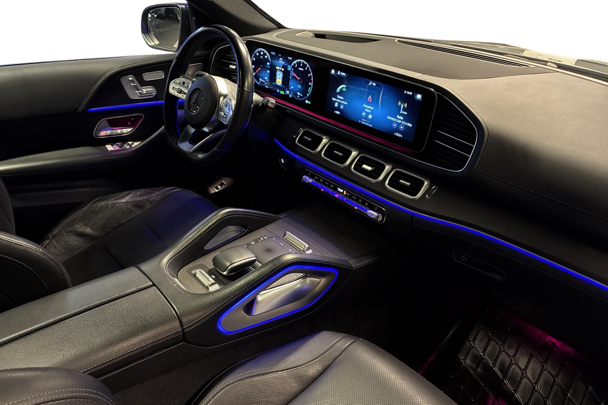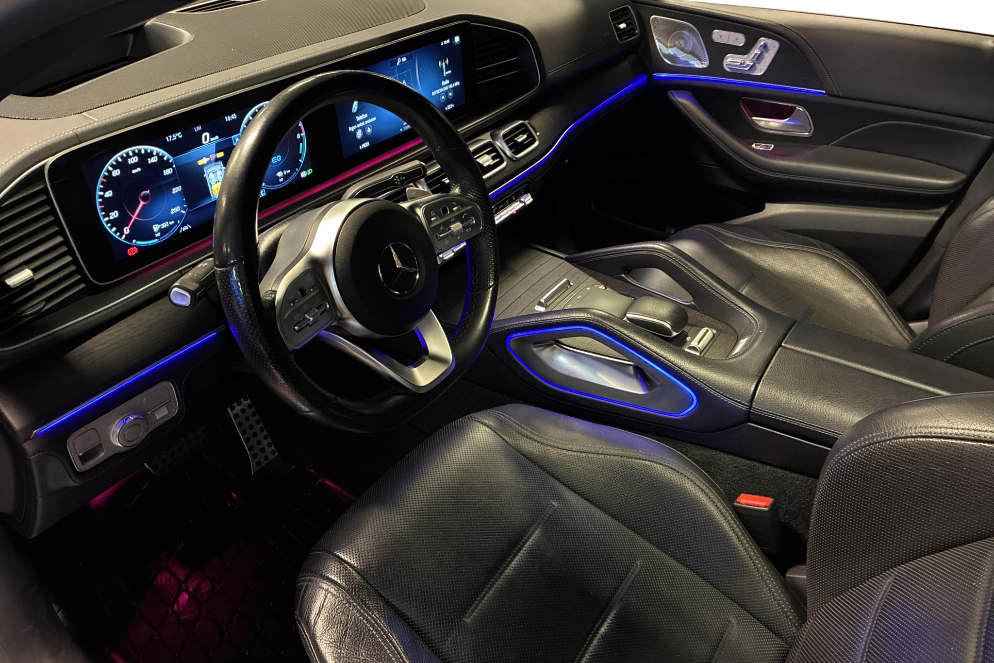 Den sportiga AMG Line-exteriören tillsammans med Night Package och 21" AMG smidda fälgar ger bilen en riktigt vass framtoning. Invändigt möts du av svart nappaläder, AMG sportmultifunktionsratt, panelbelysning och panoramatak som ger en rymlig och exklusiv känsla.