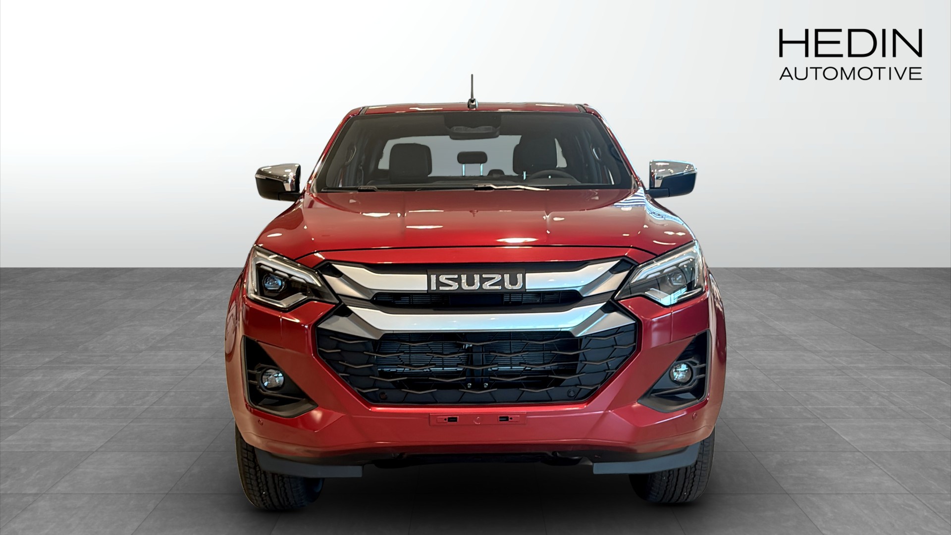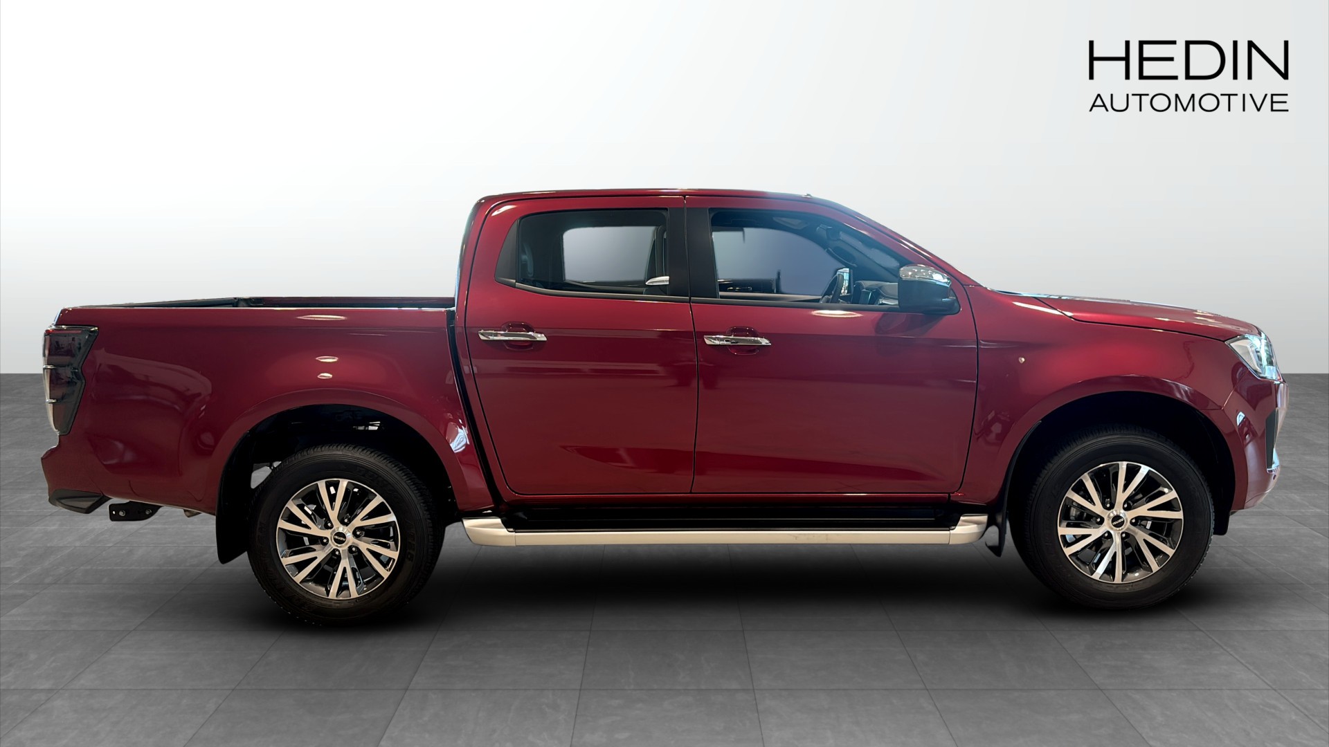 En röd Isuzu D-Max XRL med CNG-konvertering (skatten blir där med låga 4244kr/år) för omgående leverans.