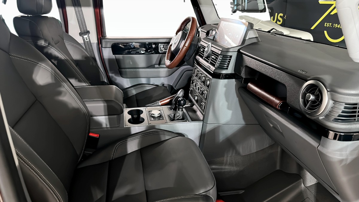 Interiören är både bekväm och robust med svarta RECARO-säten i exklusiv läderklädsel och uppvärmda framsäten. Modern teknik som Pathfinder off-road navigation, en avancerad stöldskyddslarmsystem och kamerastöd för parkering gör denna SUV till en kombination av gammaldags styrka och modern innovation.
