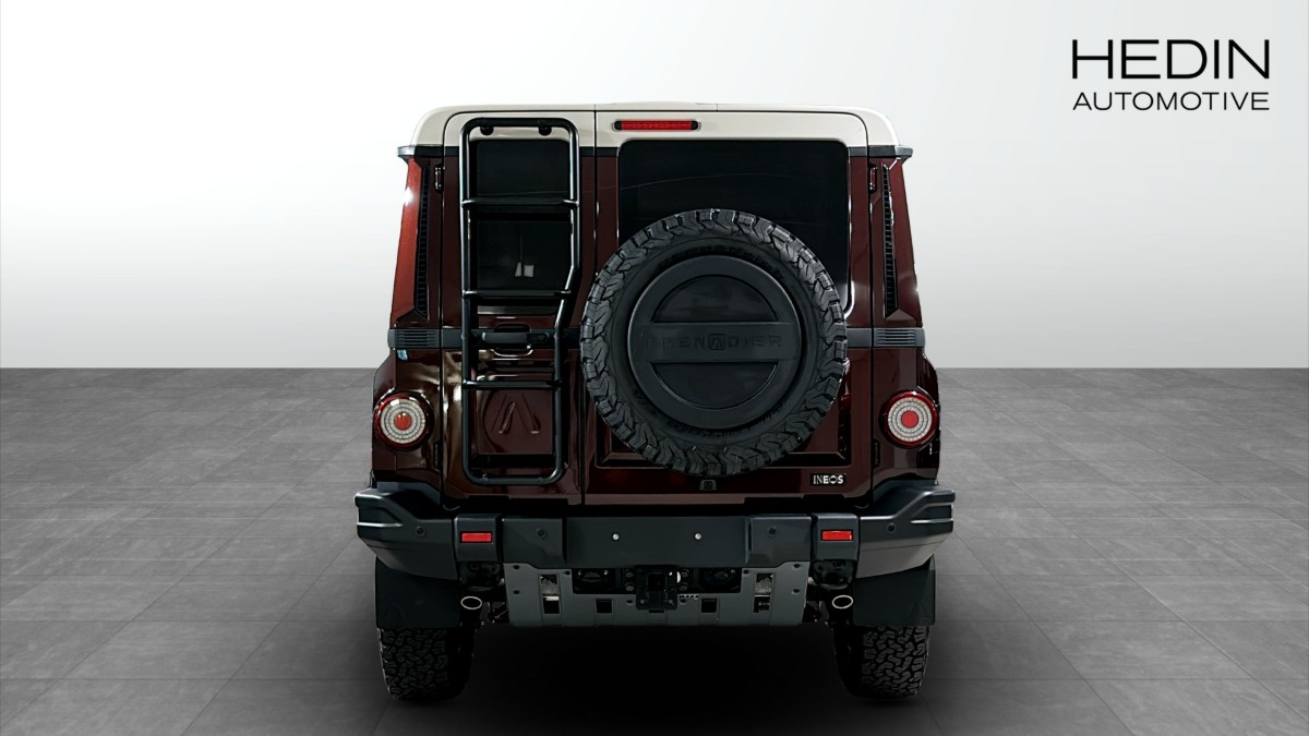 Med kaross i den slående färgen Queens Red och kontrasterande tak i Scottish White, står den ut visuellt medan funktionalitet är i fokus. Utrustad med BFGoodrich All-Terrain-däck, skidlplåtar fram och bak, samt differentiallås på både fram- och bakaxlar, tacklar Grenadier alla typer av terräng med lätthet. Safari-fönster och en hög monterad luftintag kompletterar bilens unika design och praktiska egenskaper.