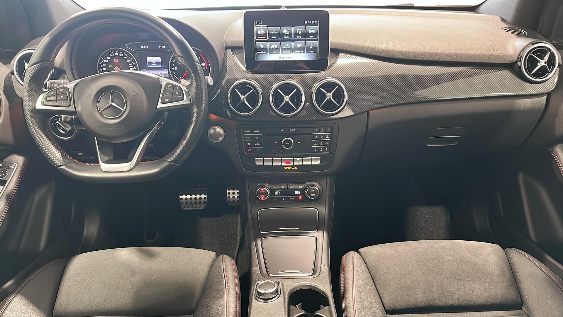 Mercedes-Benz B 180 d AMG Sport med panoramatak – en rymlig, komfortabel och bränslesnål premiumkompakt för hela familjen.