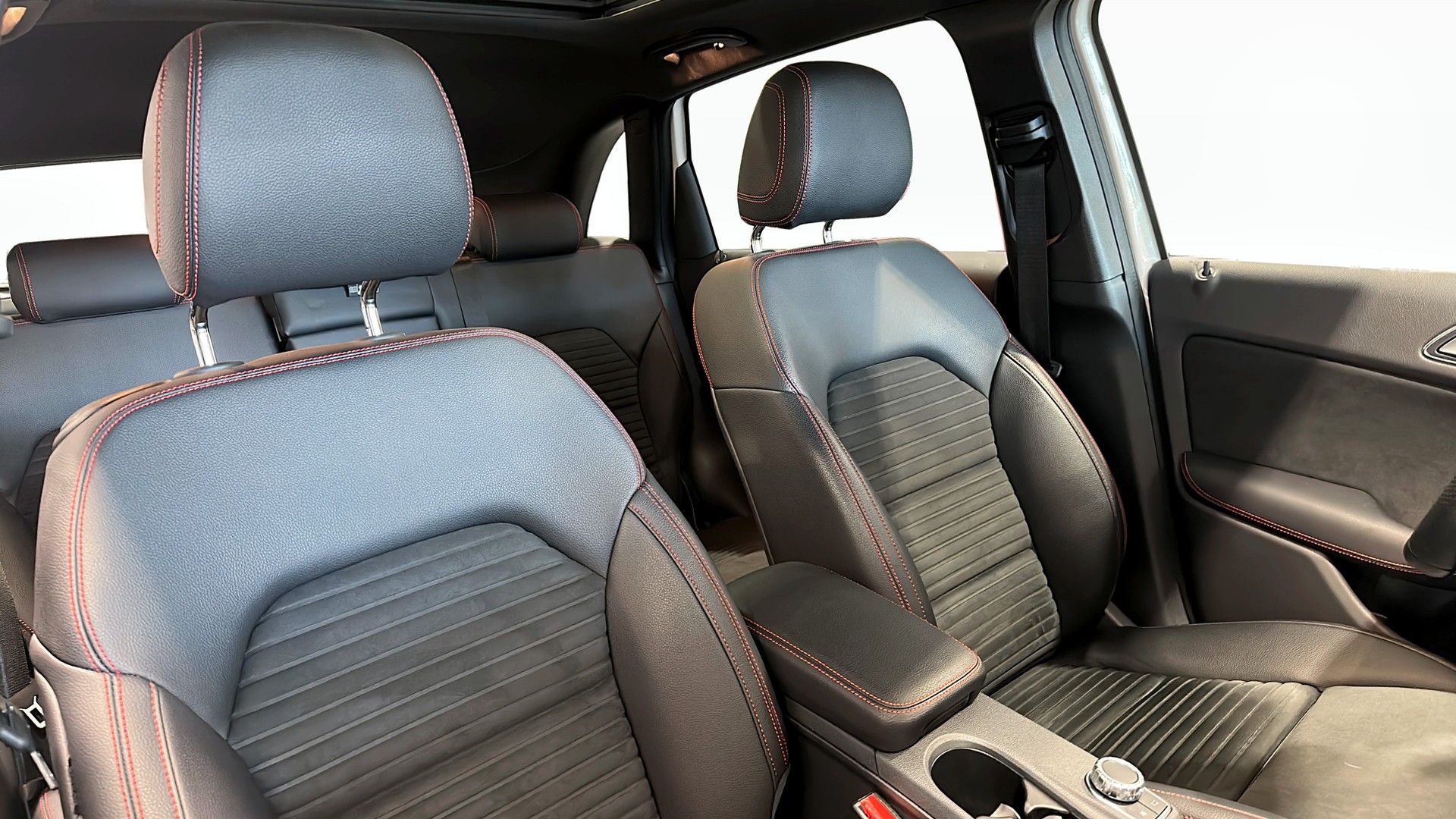 Invändigt möts du av en stilren kupé med alcantara/skinnklädsel, öppningsbart panoramatak och sportigare känsla tack vare AMG Sport-paketet och växelpaddlar på ratten. Bekvämligheter som nyckelfri start, sätesvärme fram, elhissar runt om, farthållare/fartbegränsare, Bluetooth och inbyggd GPS gör varje resa enkel och behaglig.