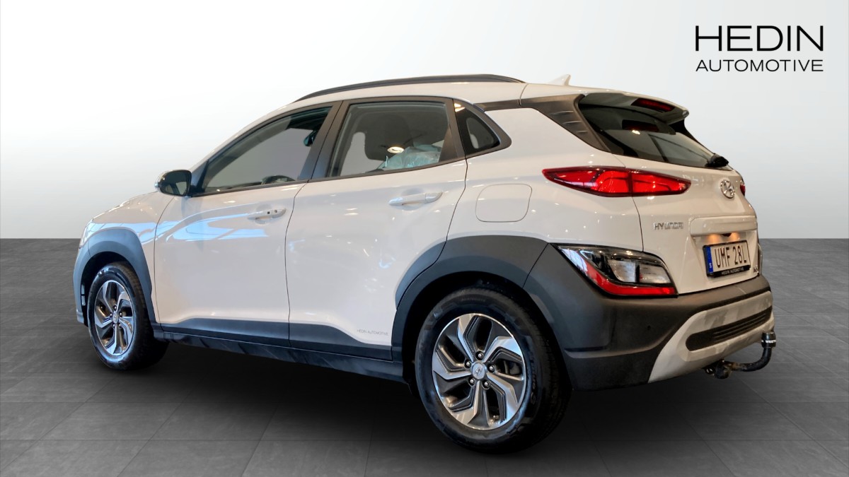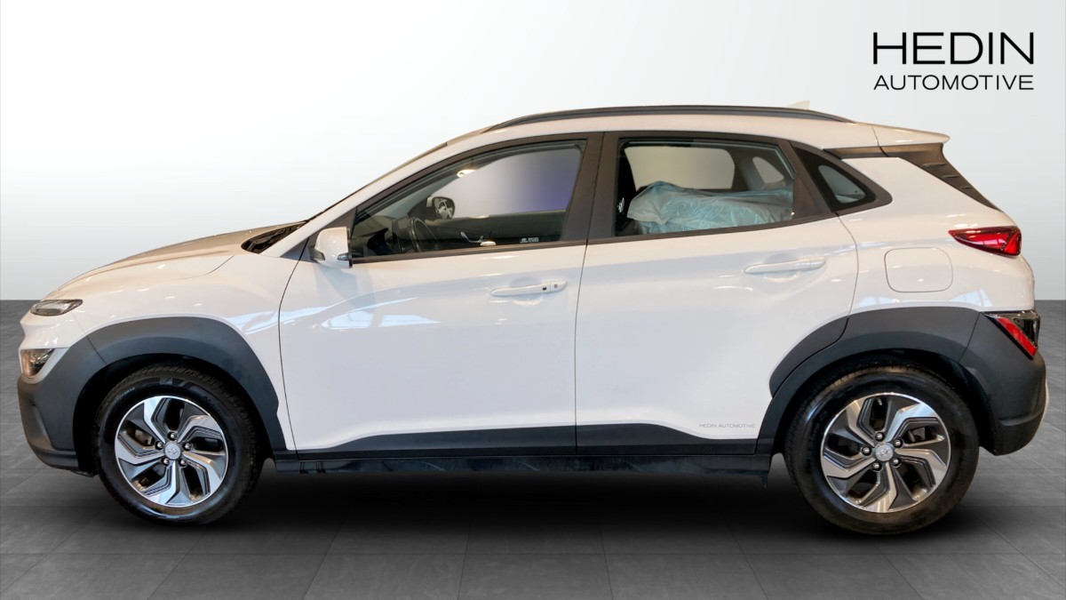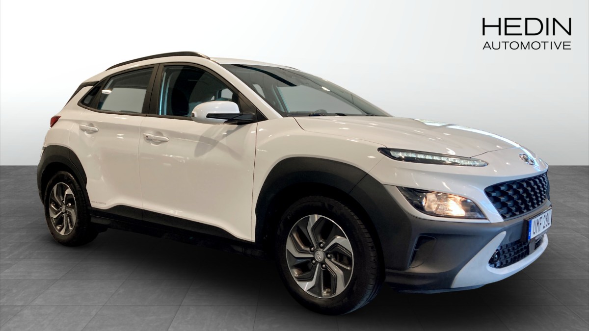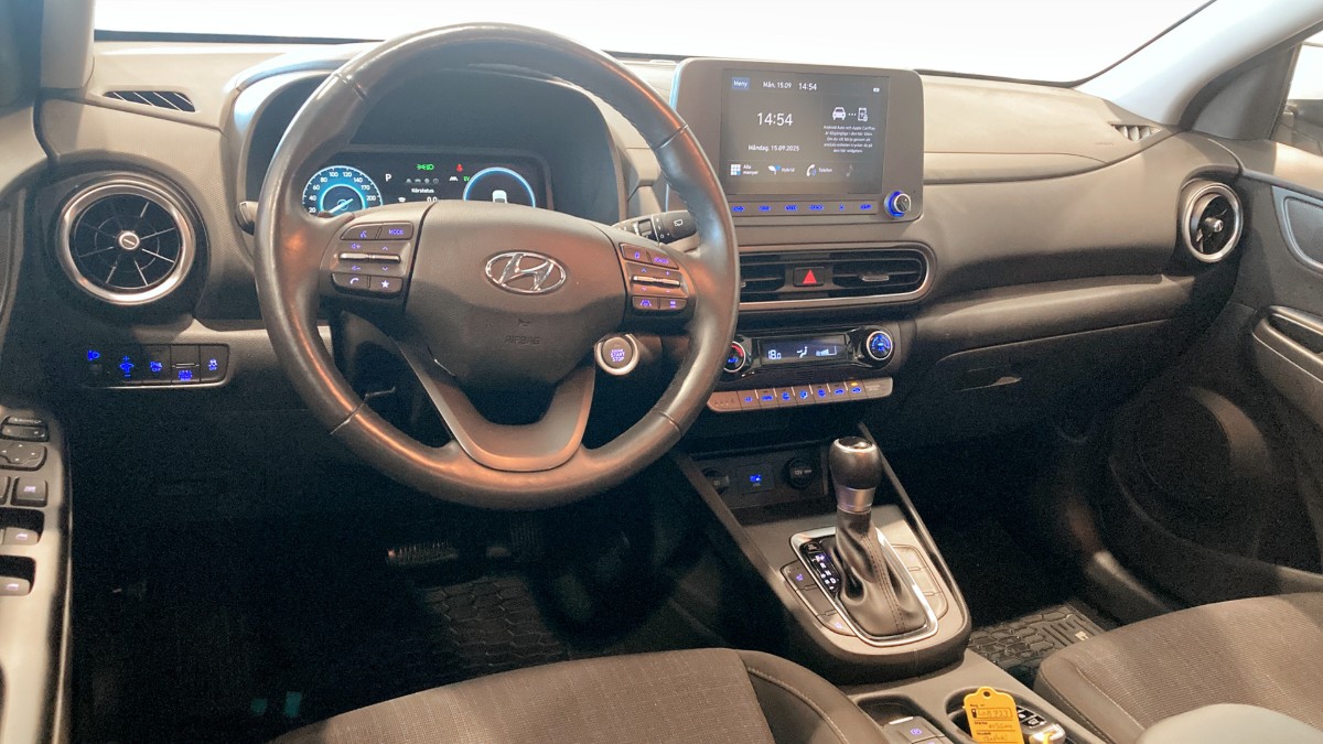 Denna Kona är en smidig och lättkörd hybrid med automatlåda och framhjulsdrift, låg förbrukning (från ca 4,9 l/100 km WLTP blandad körning) och låga CO2-utsläpp. Du sitter högt och bekvämt med bra överblick, och bilen har plats för fem personer.