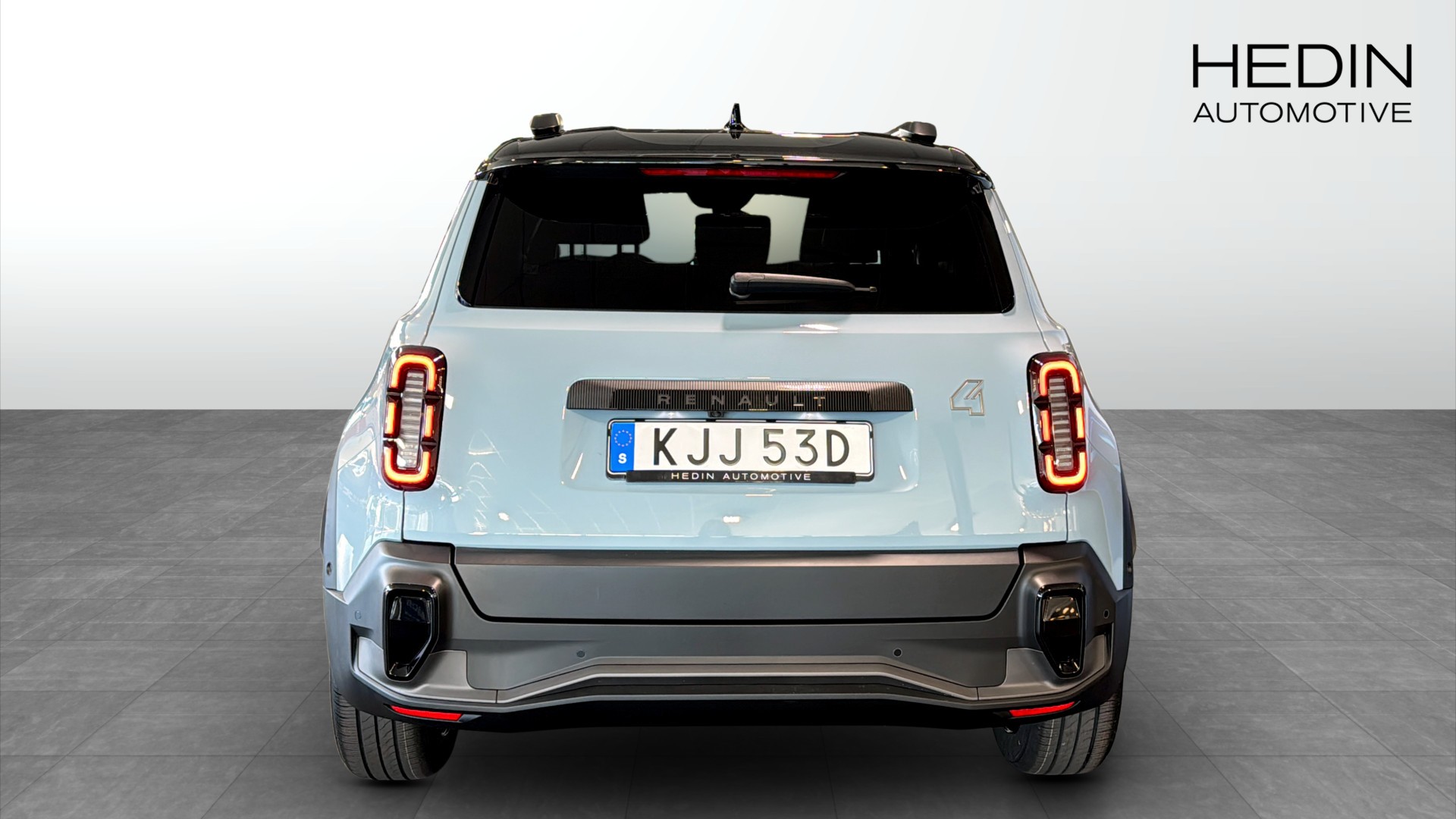 Renault 4:s historiska tredelade design i nytolkning med en distinkt LED-signatur som förstärker karaktären.