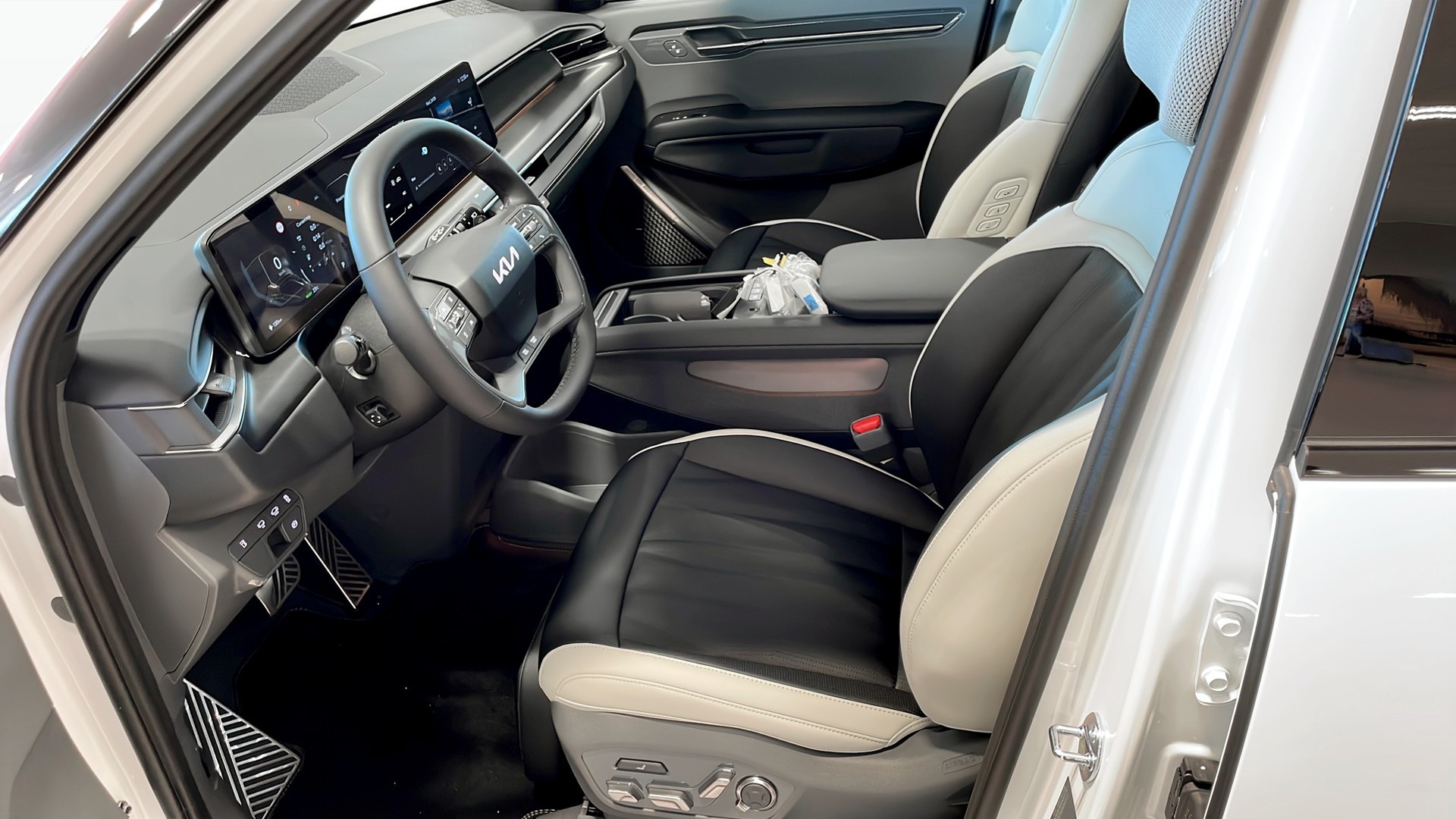 Interiören är lika imponerande som utsidan, med veganläder, eljusterbara ventilerade stolar, och både fram- och bakvärme. Avancerad teknik som 360-kamera, head-up display, digital backspegel och Kia Connect säkerställer en smart och trygg körupplevelse. Plus, med funktioner som adaptiv farthållare, dödavinkelvarning och autobroms vid backning är säkerheten i toppklass.