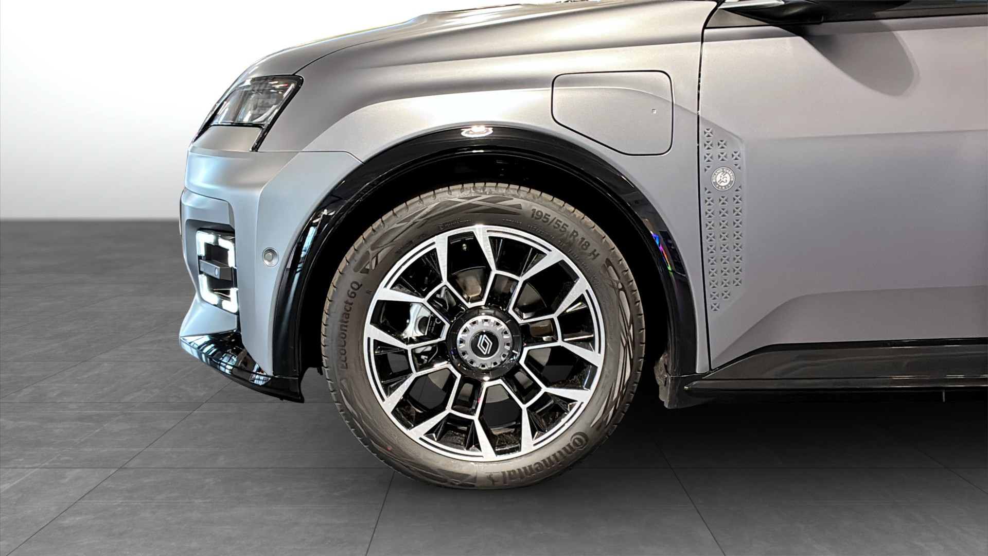 18″ diamant-cut “Electro” fälgar, glänsande svarta med Shadow Grey-nav – unik för Roland-Garros-editionen