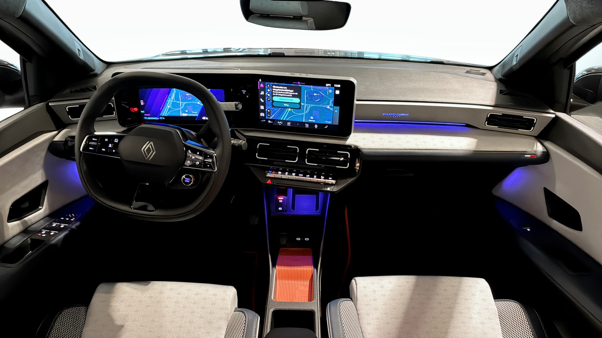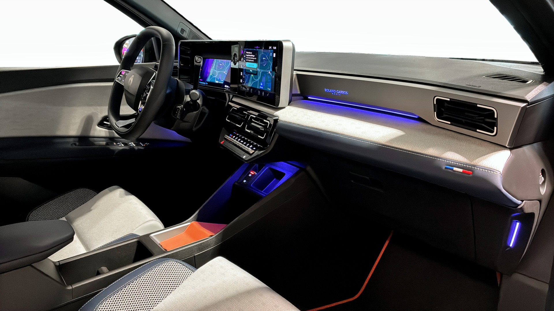 Satin-finish “Roland-Garros Paris”-skylt på instrumentbrädan