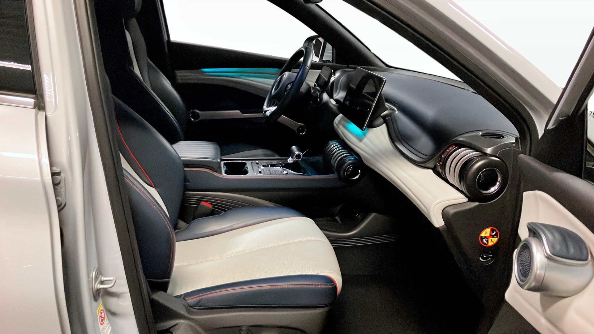 Upptäck en nästan ny 2023 BYD ATTO 3 Comfort – en elegant och modern helaelektrisk SUV med låg körsträcka på endast 4286 mil. Den sofistikerade Skiing White-metallacken kombineras med en rad toppmoderna funktioner som panoramaglastak, 360-kamera, adaptiv farthållare och elektrisk baklucka. Komfort säkerställs med eljusterbara stolar, nyckelfri öppning och start, samt trådlös mobilladdning.