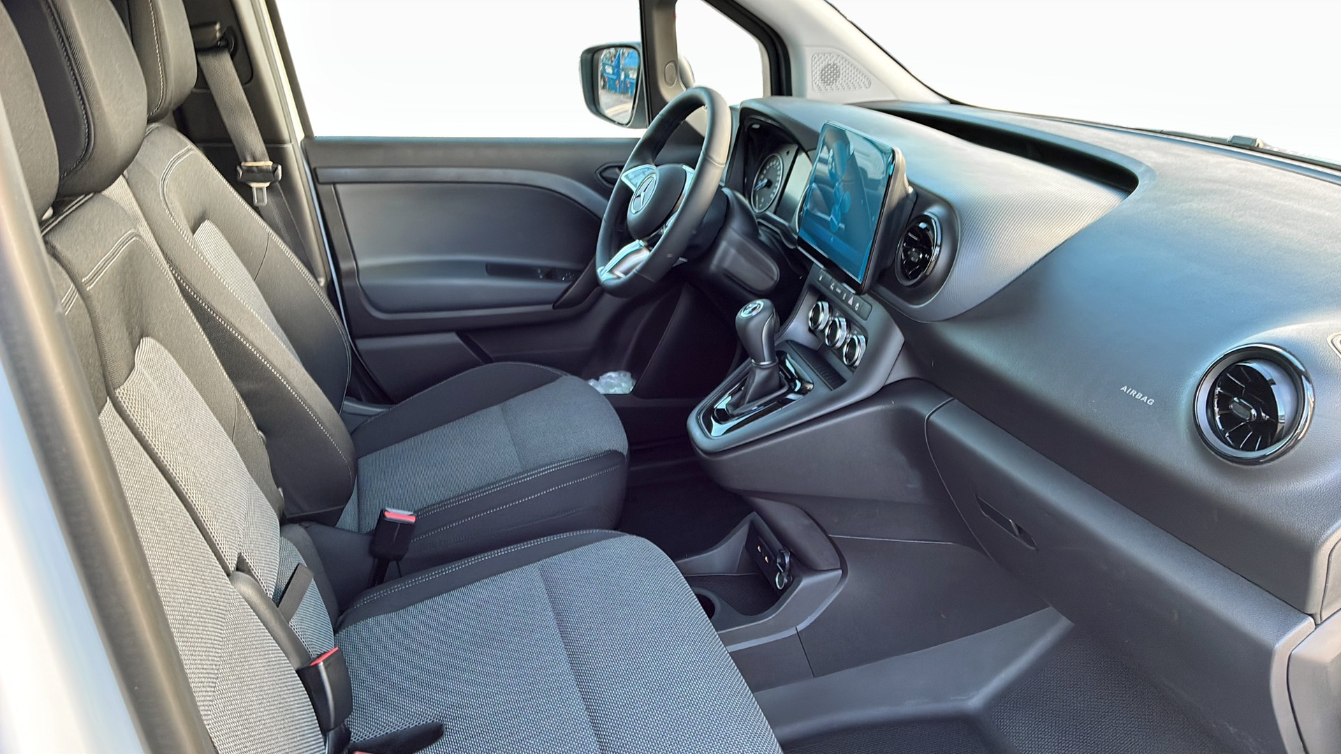 Innovativa säkerhetsfunktioner som aktiv bromsassistent, parkeringshjälp, backkamera och trafikskyltsassistans ökar tryggheten, medan teknik som MBUX multimedia med 9,5-tums skärm och smartphone-integration gör att du är uppkopplad och effektiv under arbetsdagen.