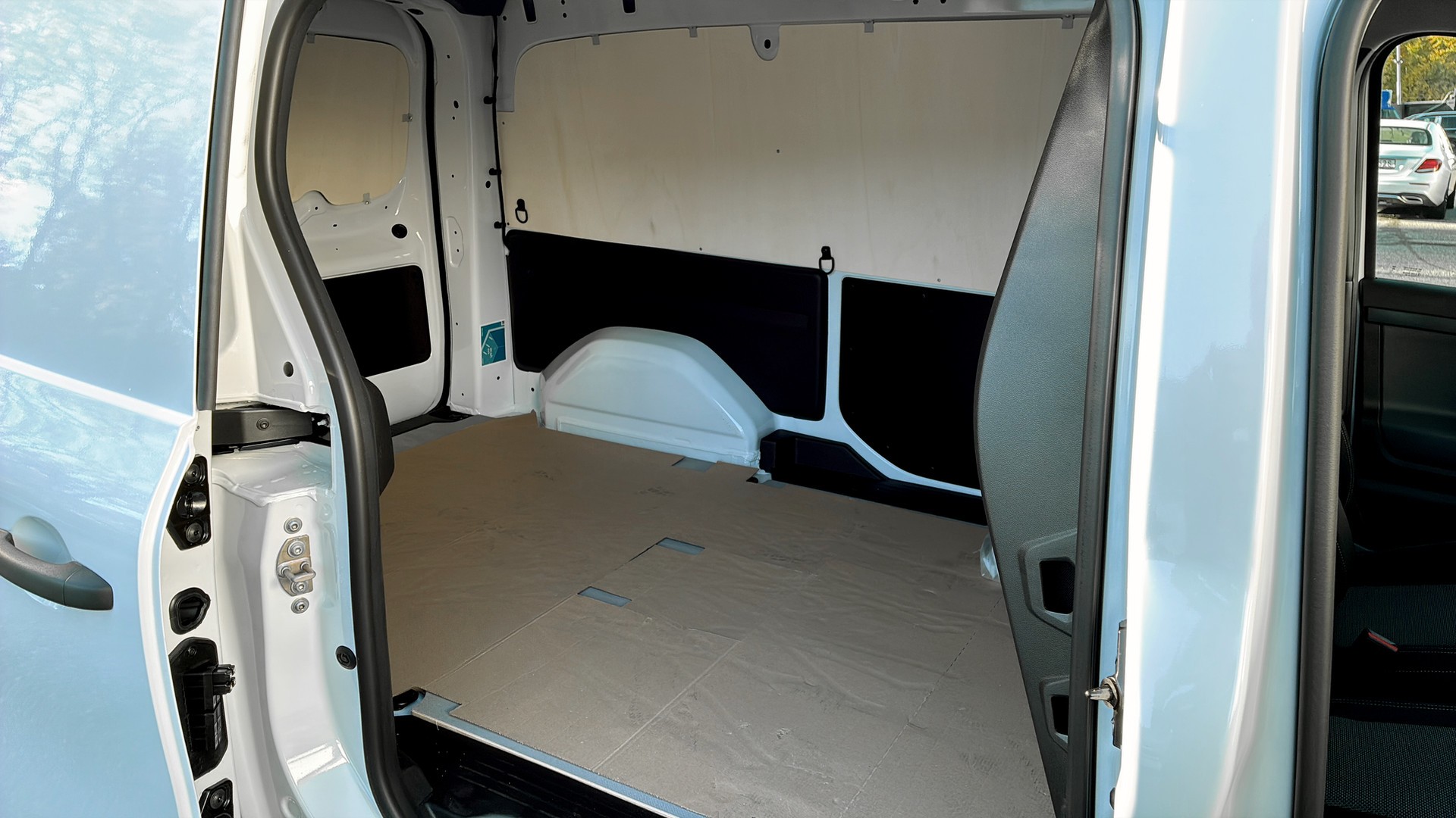 Den rena vita exteriören matchar det sofistikerade och smart designade lastutrymmet. Med bakdörrar som öppnar upp till 180 grader, skjutdörr på höger sida och trägolv i lastutrymmet är detta skåp konstruerat för att hantera alla dina verksamhetsbehov. Förarkomforten är inte heller kompromissad: uppvärmd stol, justerbart säte, multifunktionsratt, och automatiskt klimatsystem gör varje resa bekväm och smidig.