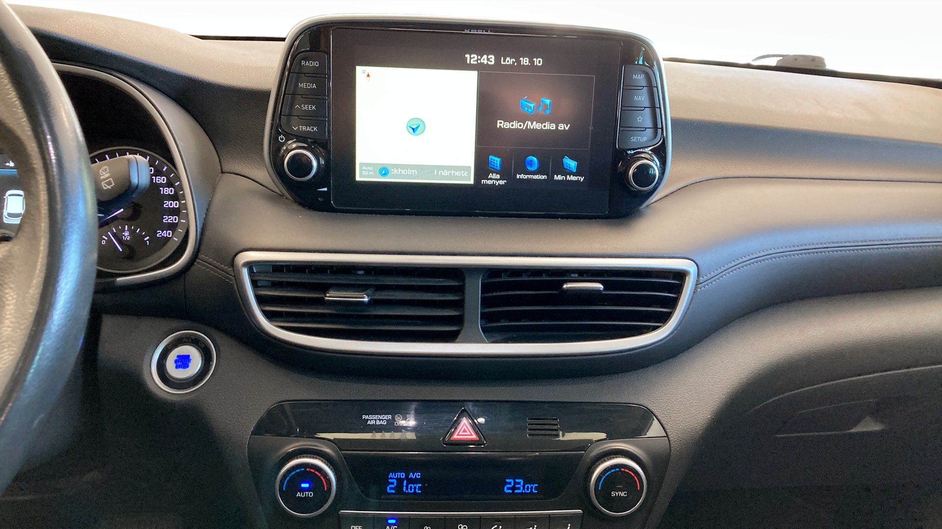 Utrustningslistan är omfattande och innehåller premiumdetaljer som skinnklädsel, adaptiv farthållare, elmanövrerade framstolar, eluppvärmt baksäte och en panoramakamera för smidig parkering. Dessutom drar du nytta av både Apple CarPlay och Android Auto, trådlös mobilladdning och en hel del avancerade säkerhetssystem, såsom döda-vinkel-varnare och Lane Assist.