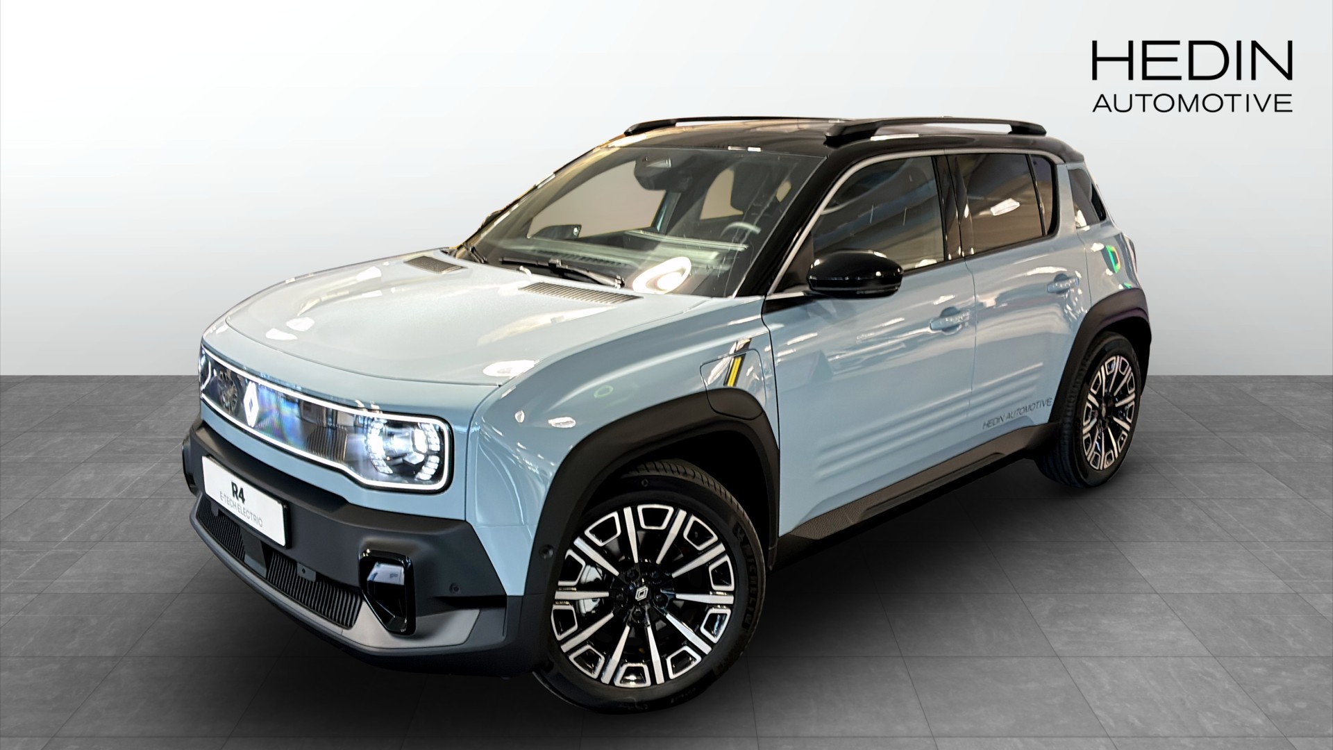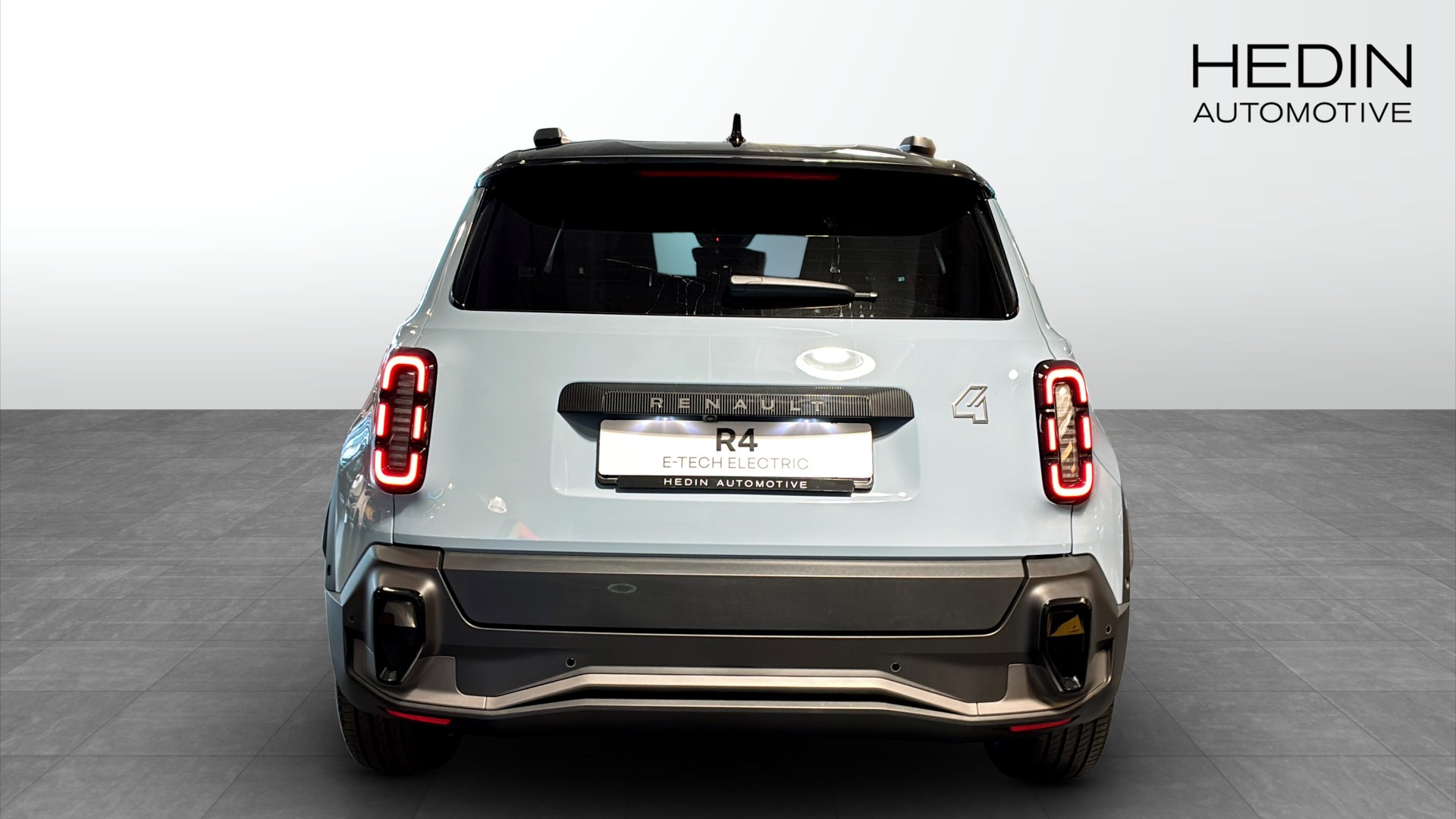 Renault 4:s historiska tredelade design i nytolkning med en distinkt LED-signatur som förstärker karaktären.