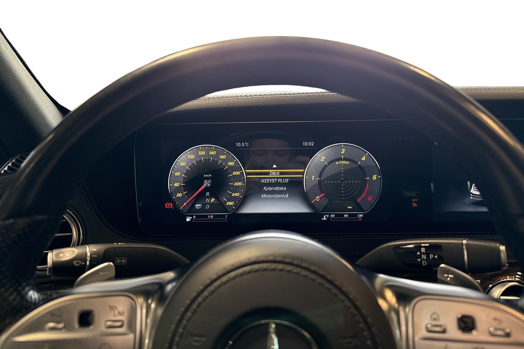 Förutom sin eleganta svarta design har denna bil allt du kan önska vad gäller utrustning, inklusive AMG-line exteriör och interiör, Burmester® 3D surroundljud, panoramatak, adaptiv farthållare, samt massage- och ventilationssäten som maximerar din komfort.