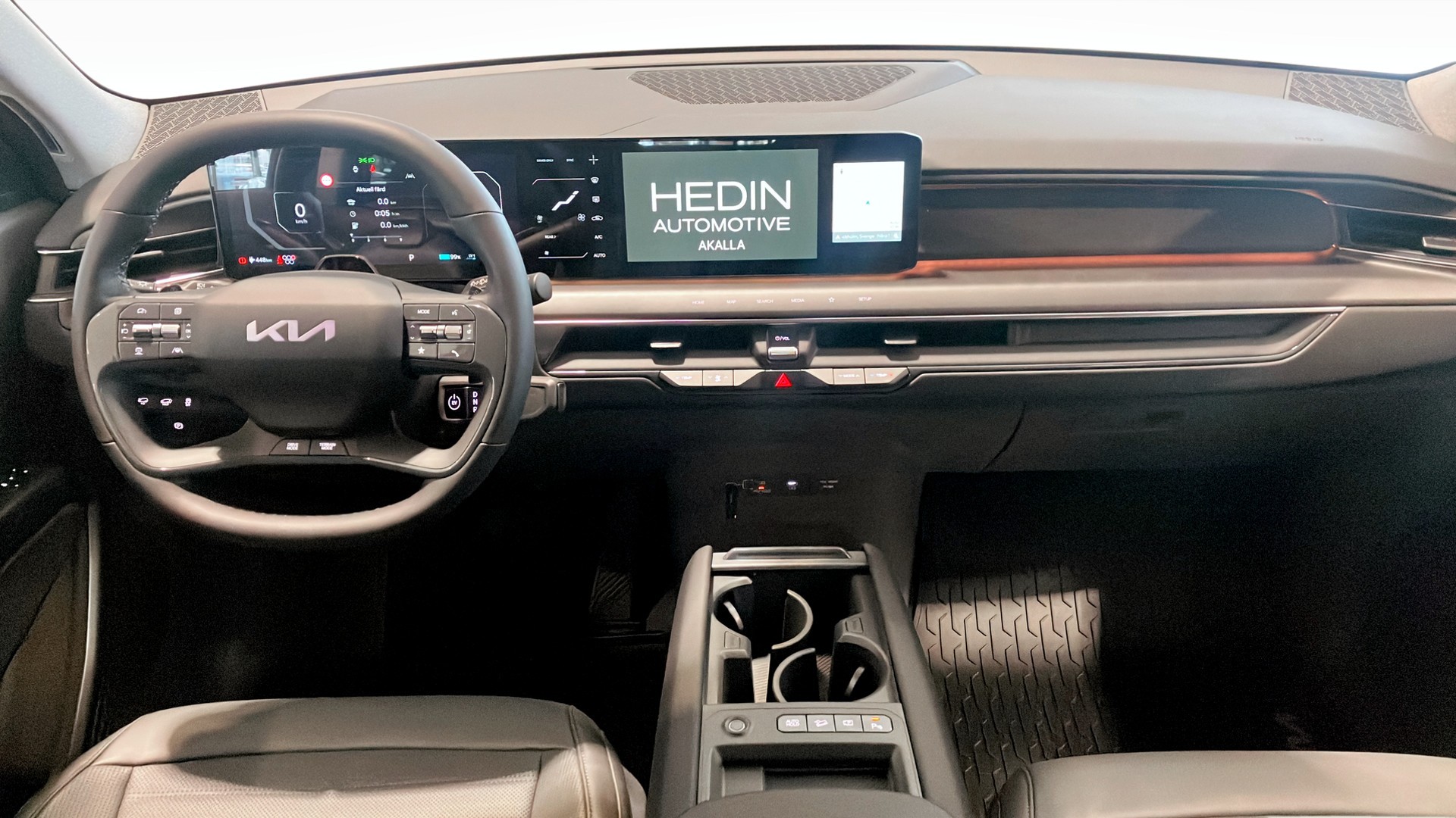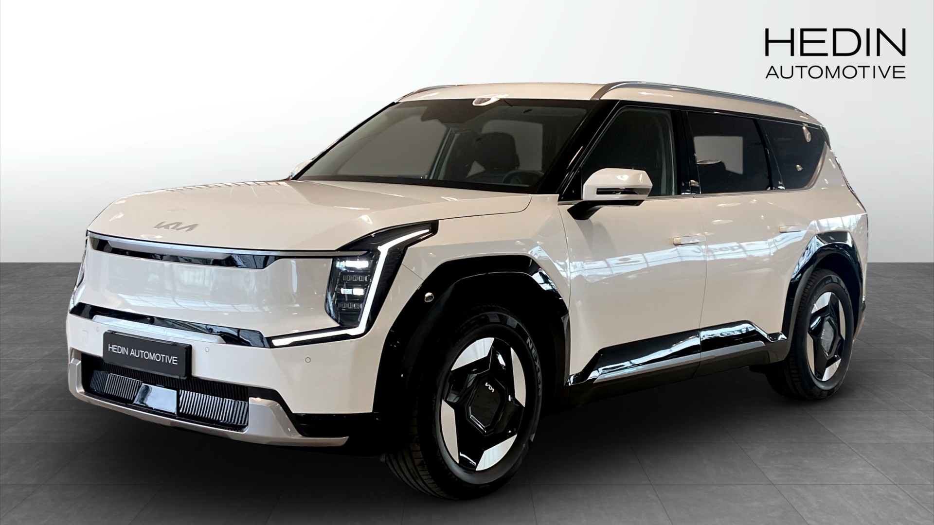 Kia EV9 är en helt elektrisk SUV som kombinerar modern design, avancerad teknik och rymlig komfort. Den är utrustad med dubbla 12,3-tums skärmar i kupén - en för instrumentpanelen och en för infotainment - vilket ger en futuristisk och användarvänlig körupplevelse. Som en ren elbil har EV9 noll CO2-utsläpp (WLTP) under körning och en imponerande räckvidd på upp till cirka 505 km på en full laddning, beroende på vikt /väder och körförhållanden.