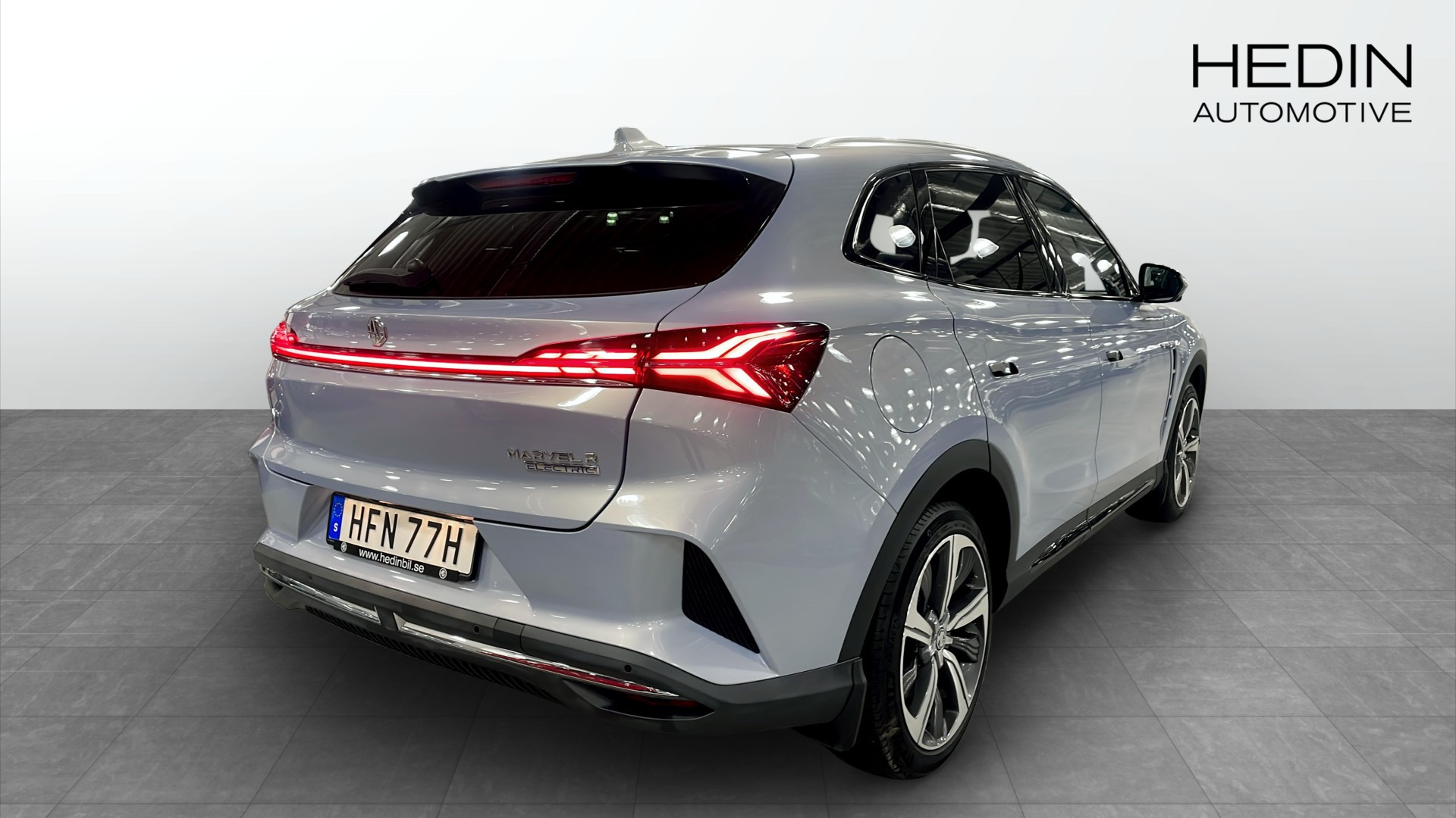 MG Marvel R Performance 4x4 i läckra färgen Prism Blue – en nästan ny, välutrustad el-SUV med riktigt skjuts i drivlinan och premiumkänsla rakt igenom. Bilen är från 2022, har endast gått ca 2207 mil och ger upp till ca 37 mil räckvidd enligt WLTP.