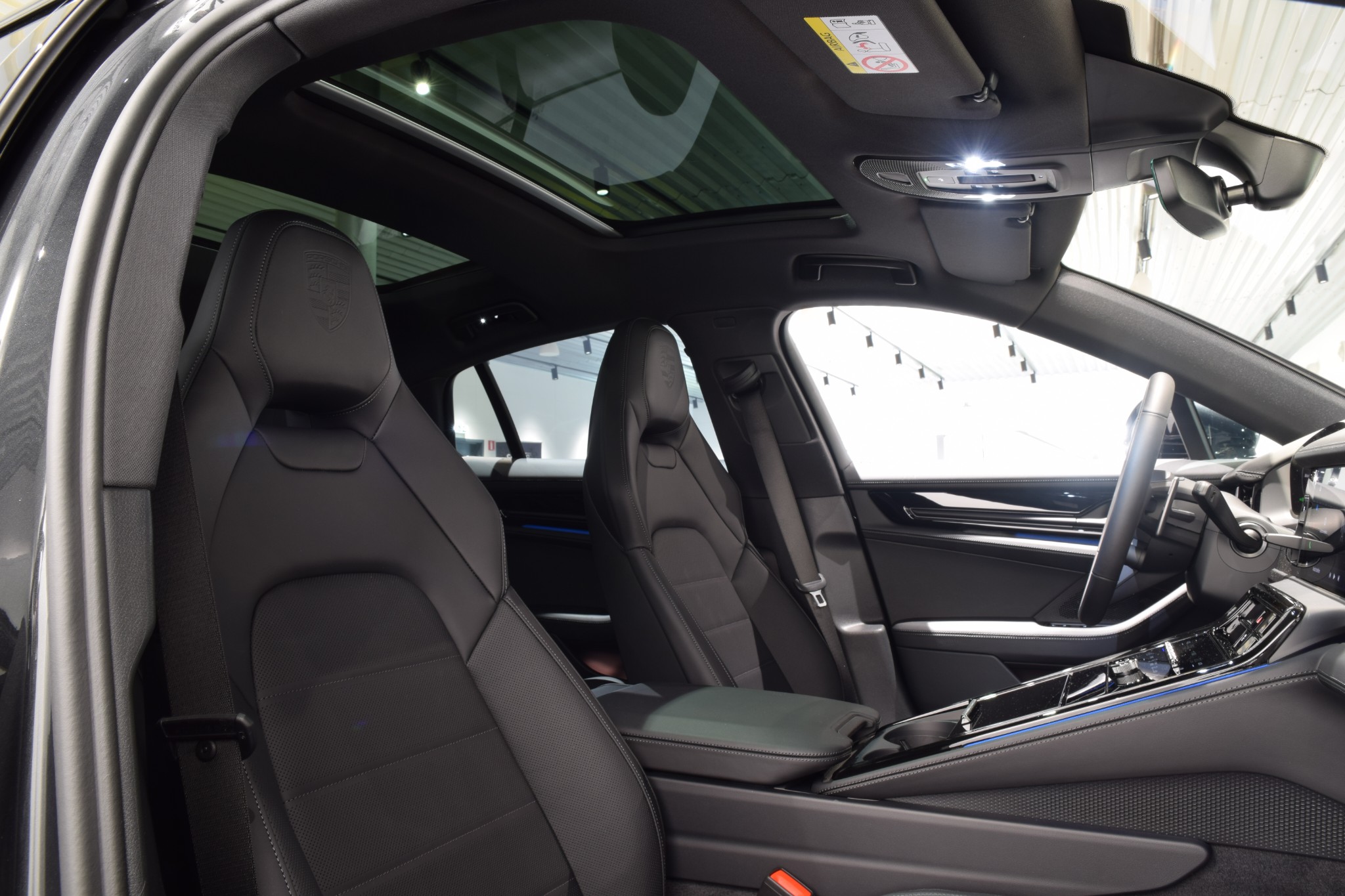 - Porschevapen präglade på nackstöd