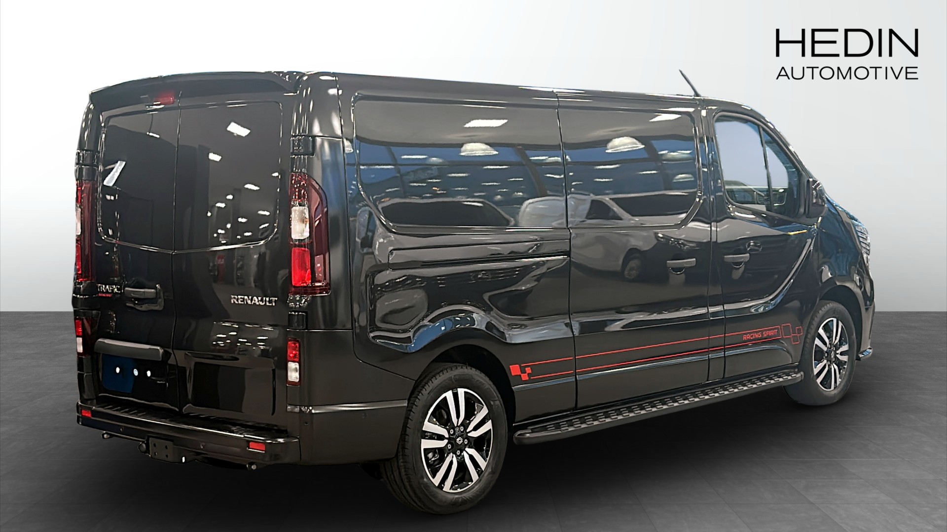 Upptäck den helt nya Renault Trafic L2H1 Racing Spirit DCI 170 Automat, årsmodell 2025. Denna svarta skåpbil kombinerar stil och funktionalitet med en kraftfull dieselmotor på 170 hästkrafter och automatlåda för smidig körning.