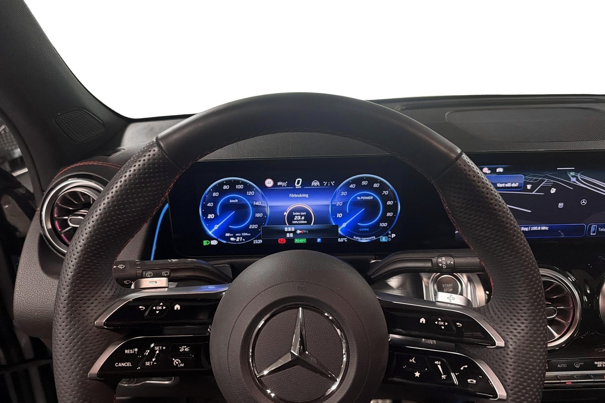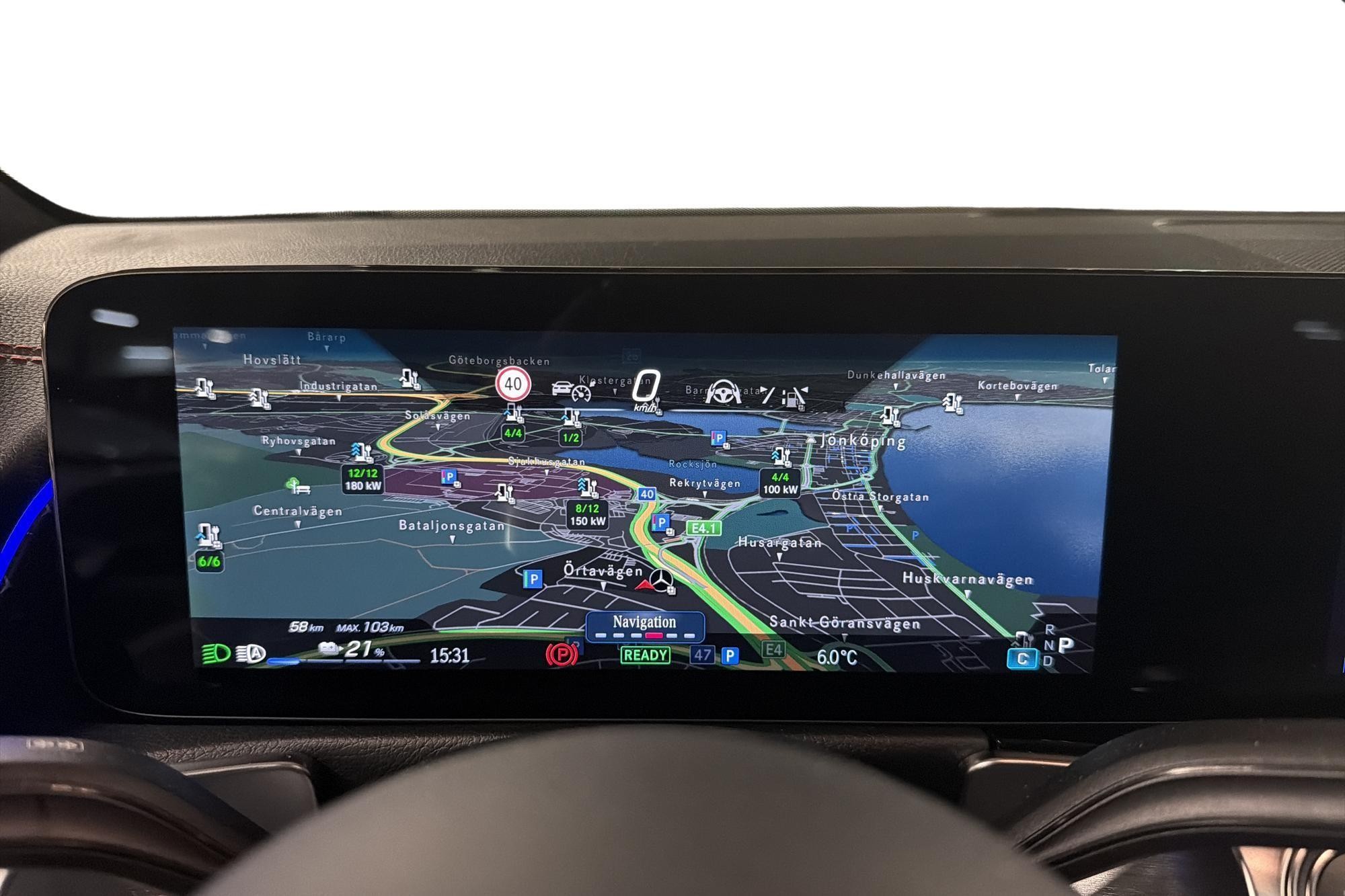 Förarplatsen domineras av MBUX multimediasystem med widescreen cockpit, större 10,25" mediedisplay, digitalradio (DAB), utökat USB-paket samt ambientebelysning med 64 färger. Easy-Pack elektrisk baklucka och 12V-uttag i bagaget gör bilen extra praktisk i vardagen.