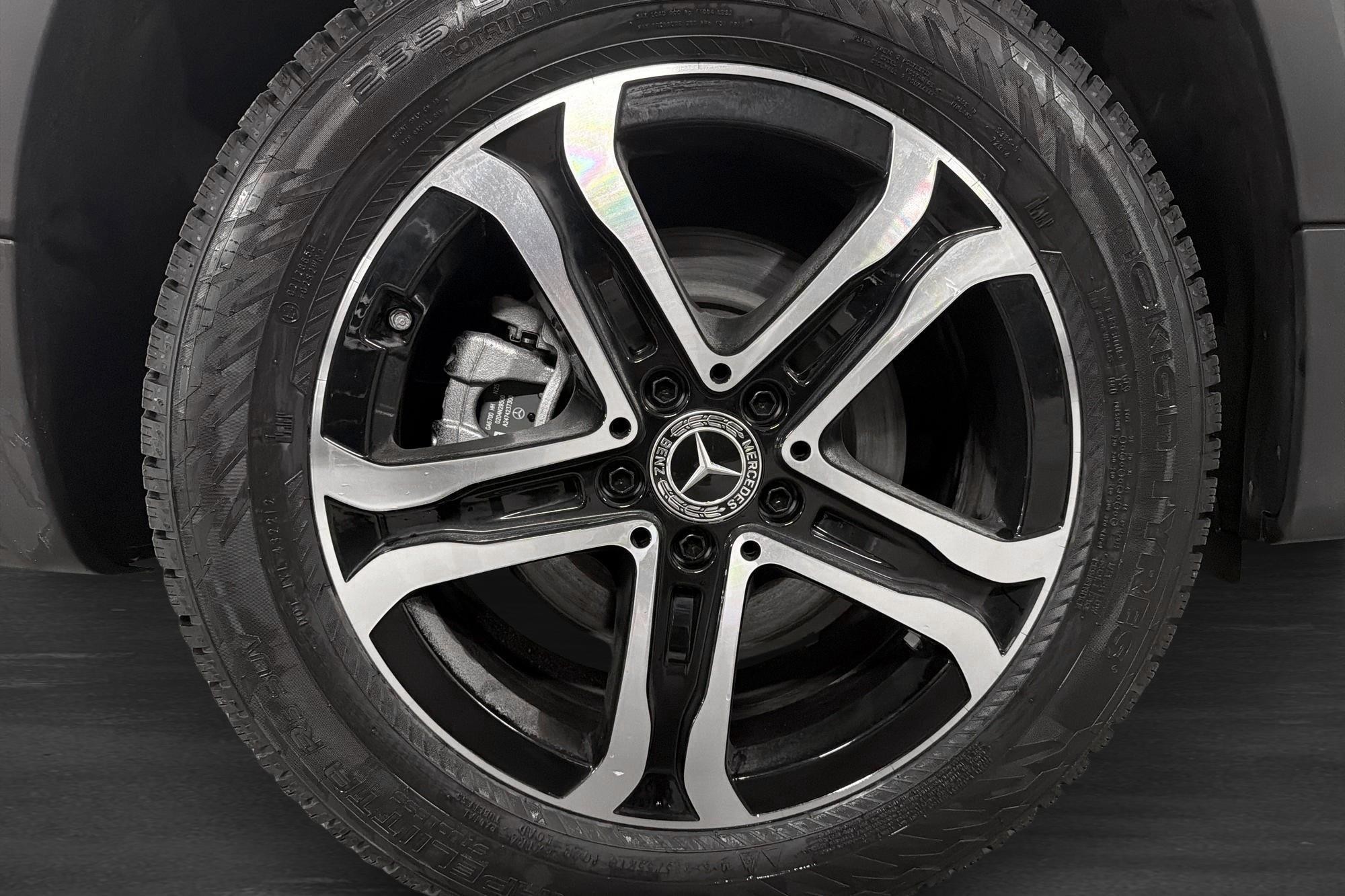 Bilen kommer i elegant bergsgrå metallic med AMG Line Advanced, AMG-styling, 18" AMG lättmetallfälgar, svarta takrails, mörktonade rutor bak och svart innertak – ett sobert men sportigt helhetsintryck.