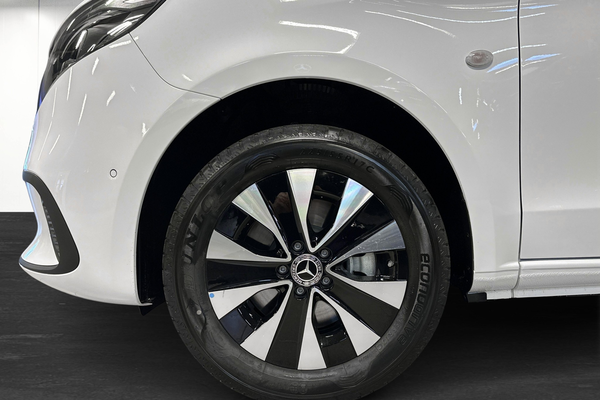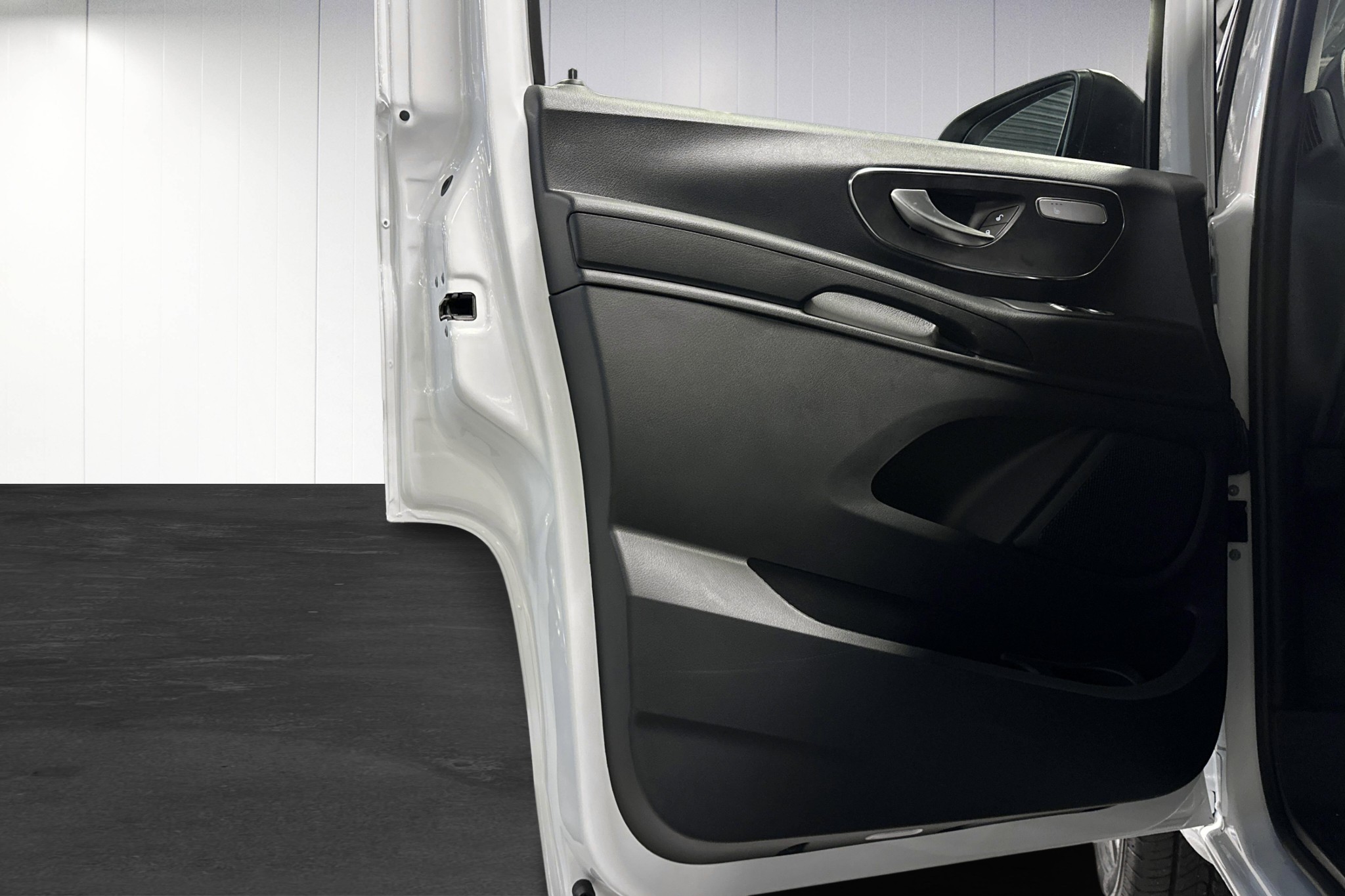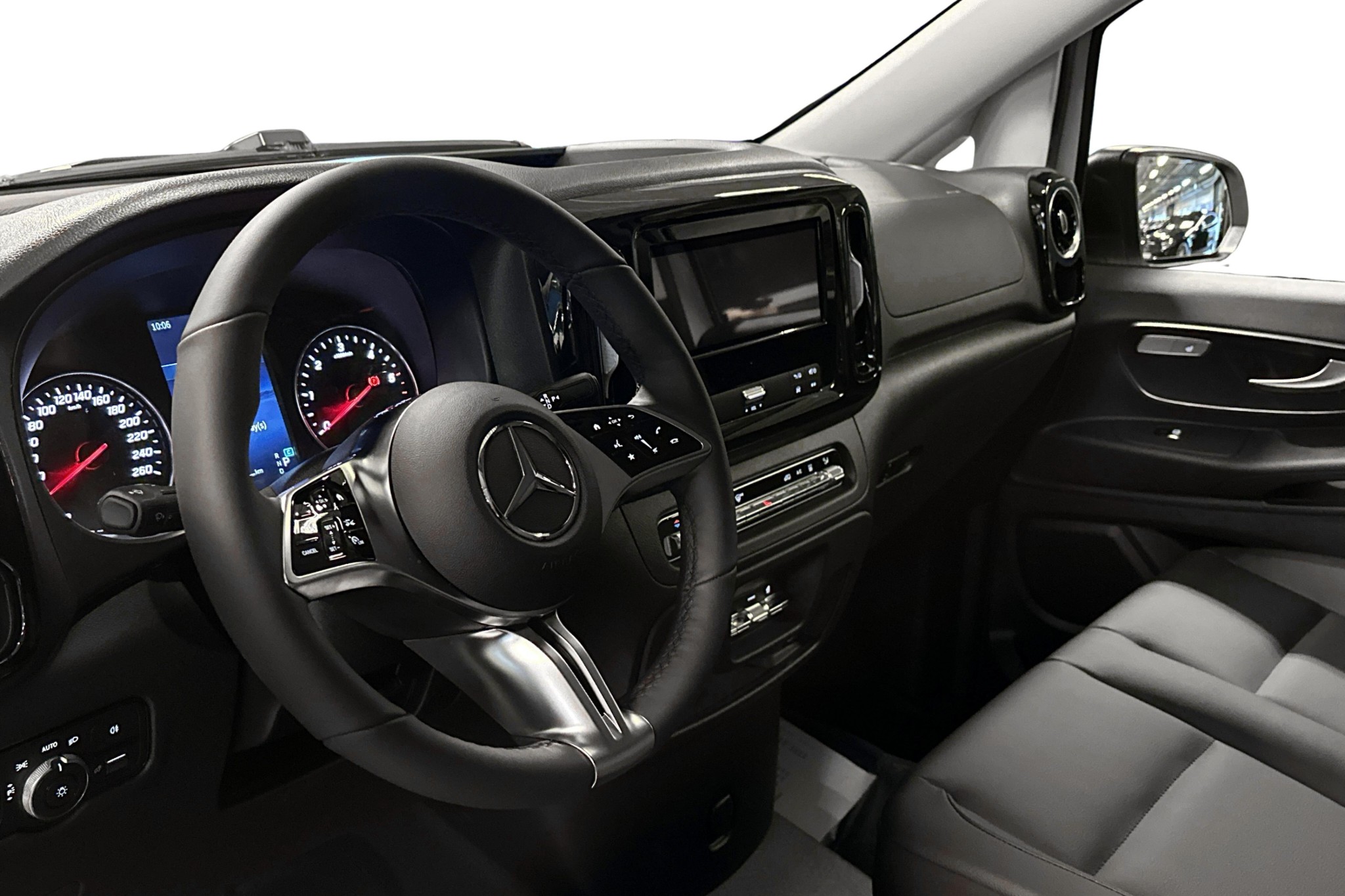 Den extra långa modellen erbjuder generös lastkapacitet och en maximal lastvikt på upp till 3200 kg, vilket gör den idealisk för företag eller större transporter. Förarutrymmet har svart konstläderklädsel, uppvärmd multifunktionsratt i läder och det moderna MBUX multimediapaketet med navigation.