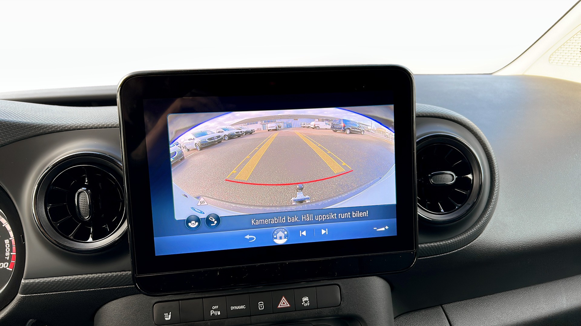 Förarplatsen är modern och komfortabel med automatisk klimatanläggning, eluppvärmd förarstol, säteskomfortpaket, uppvärmd multifunktionsratt i läder, svart tygklädsel och justerbar ratt. MBUX multimediasystem med 9,5” skärm, digitalradio (DAB), smartphoneintegration, live traffic information samt Mercedes-Benz nöduppringning ger både uppkoppling och trygghet i vardagen.