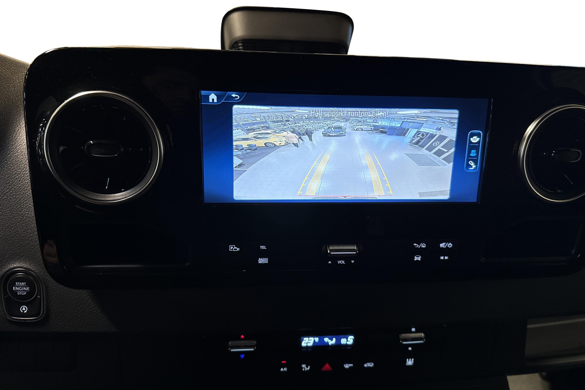 Säkerhets- och assistanssystemen är i toppklass: aktiv bromsassistent, dödvinkelassistent, sidvindsassistent, aktiv kurshållningsassistent, Attention Assist, intelligent hastighetsassistent, farthållare, färdljusassistent, LED-strålkastare, backkamera, regnsensor, Mercedes-Benz nödsamtal och krockkuddar för både förare och passagerare. Wet Wiper-system och bra ljudisolering bidrar till trygg och bekväm körning även på långa arbetsdagar.