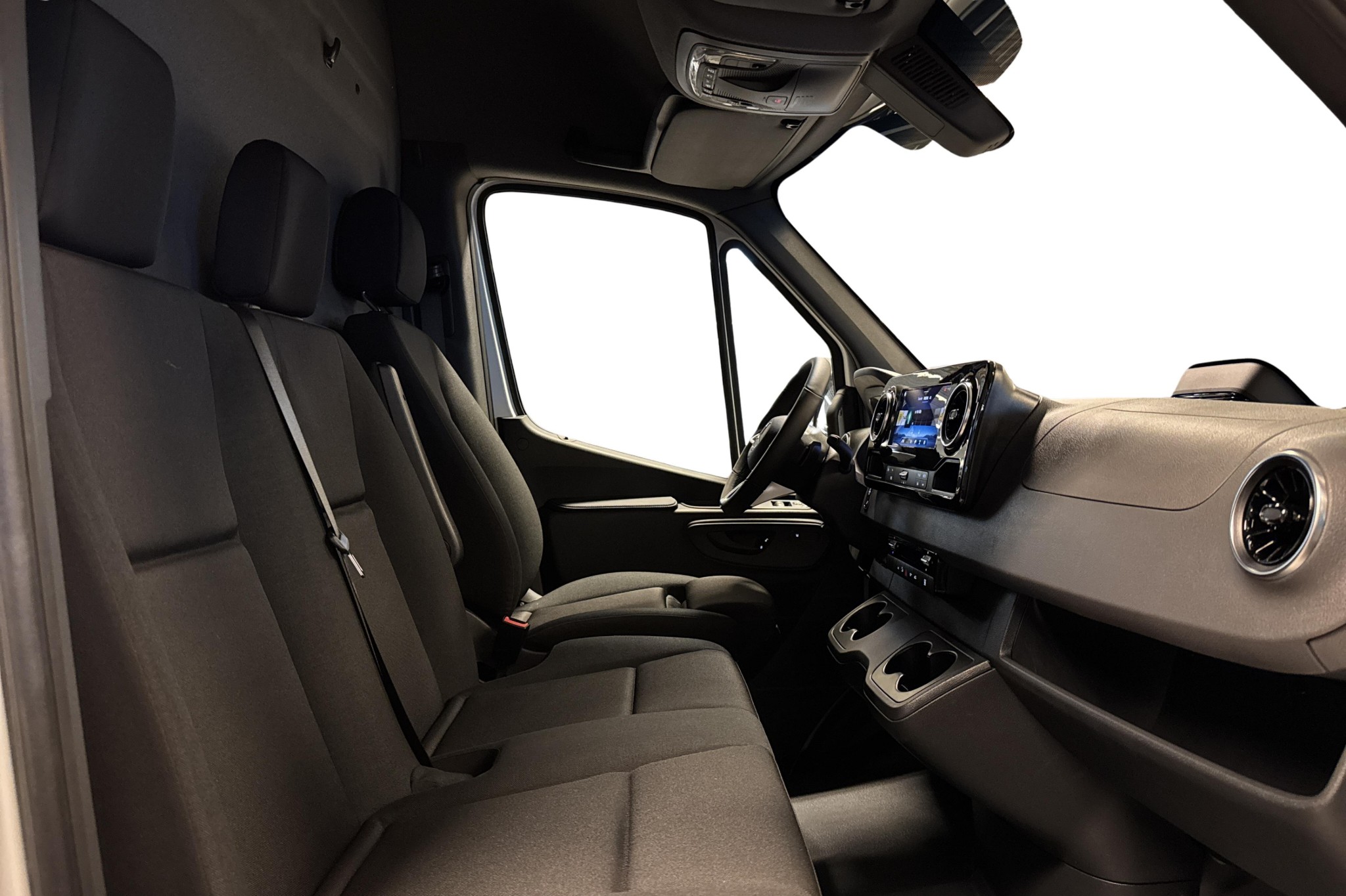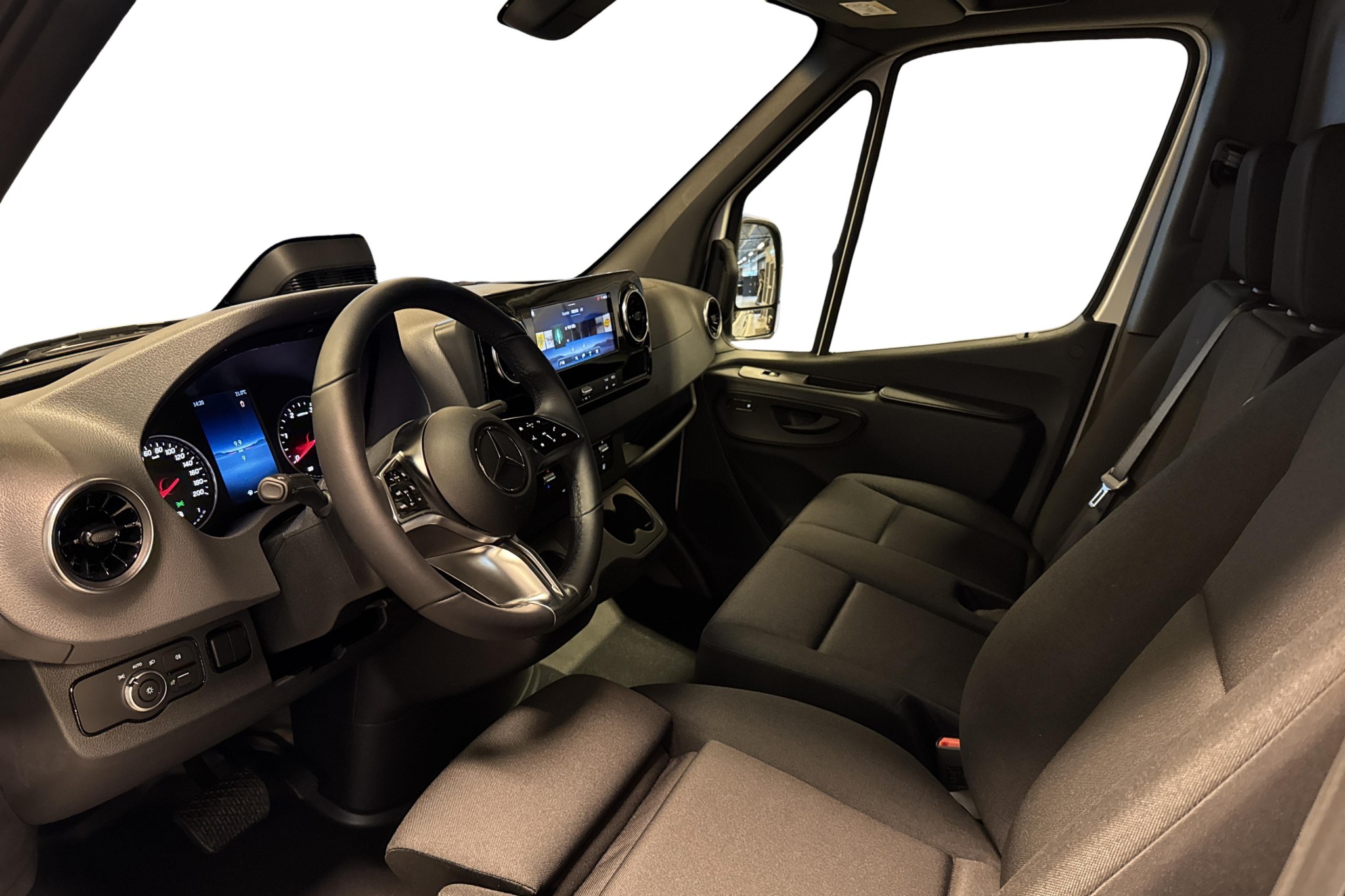 Föraren sitter bekvämt i ett fjädrande komfortsäte med svankstöd, armstöd och värme, dessutom uppvärmt passagerarsäte och dubbelt passagerarsäte fram (totalt 3 sittplatser). Läderratt, multifunktionsratt, MBUX multimediasystem med DAB-radio, smartphoneintegration, USB-uttag och digital instruktionsbok ger en modern och uppkopplad förarmiljö. Kupévärmare med tidur, vinterpaket och värmedämpande glas höjer komforten året runt.