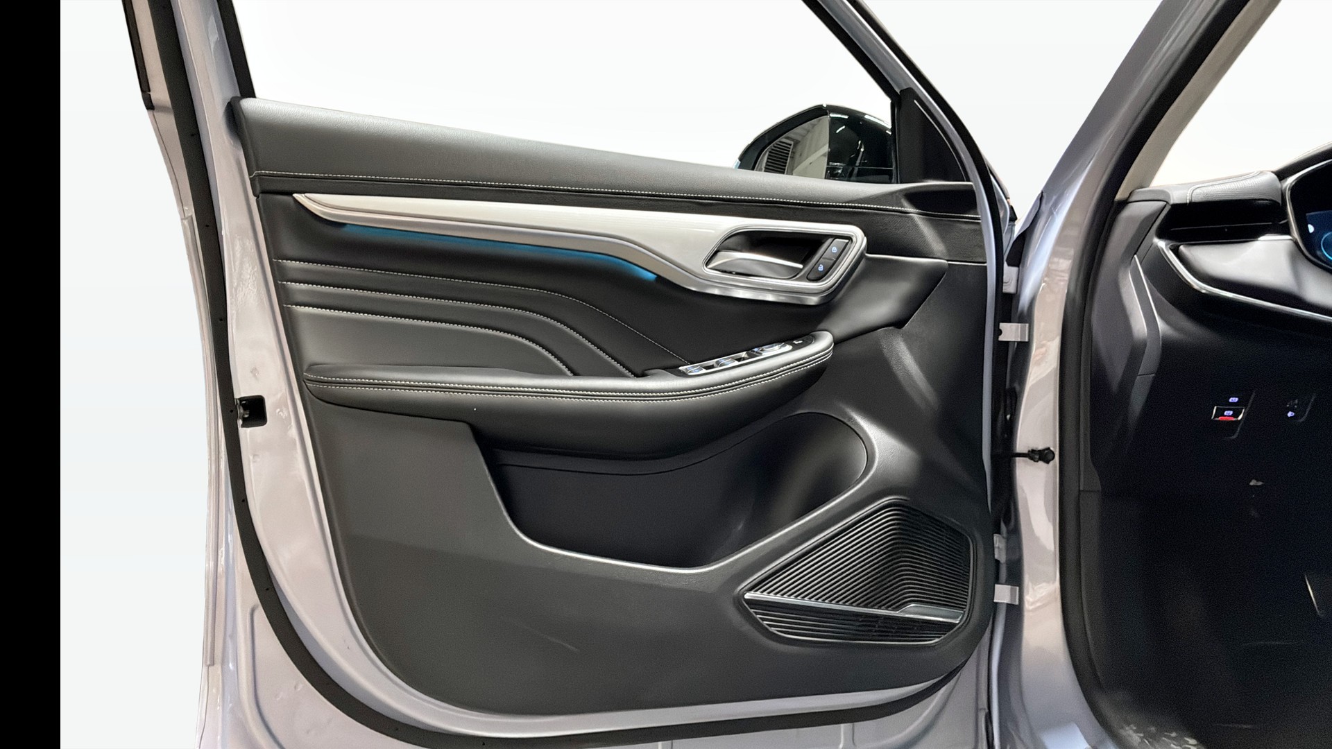 MG MARVEL R 360° Skinn Elstol Panorama Navi Carplay – en rymlig och välutrustad el-SUV i snygg Prism Blue, perfekt för dig som vill åka modernt, tyst och bekvämt.