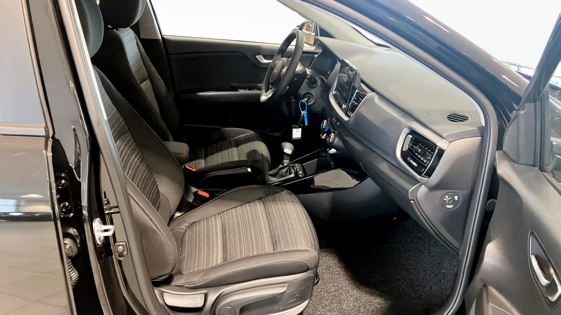 Insidan erbjuder plats för fem personer och ett generöst bagageutrymme på 352 liter, vilket gör Kia Stonic både praktisk och bekväm. För extra komfort har bilen klimatanläggning, uppvärmda framstolar och läderklädd ratt.