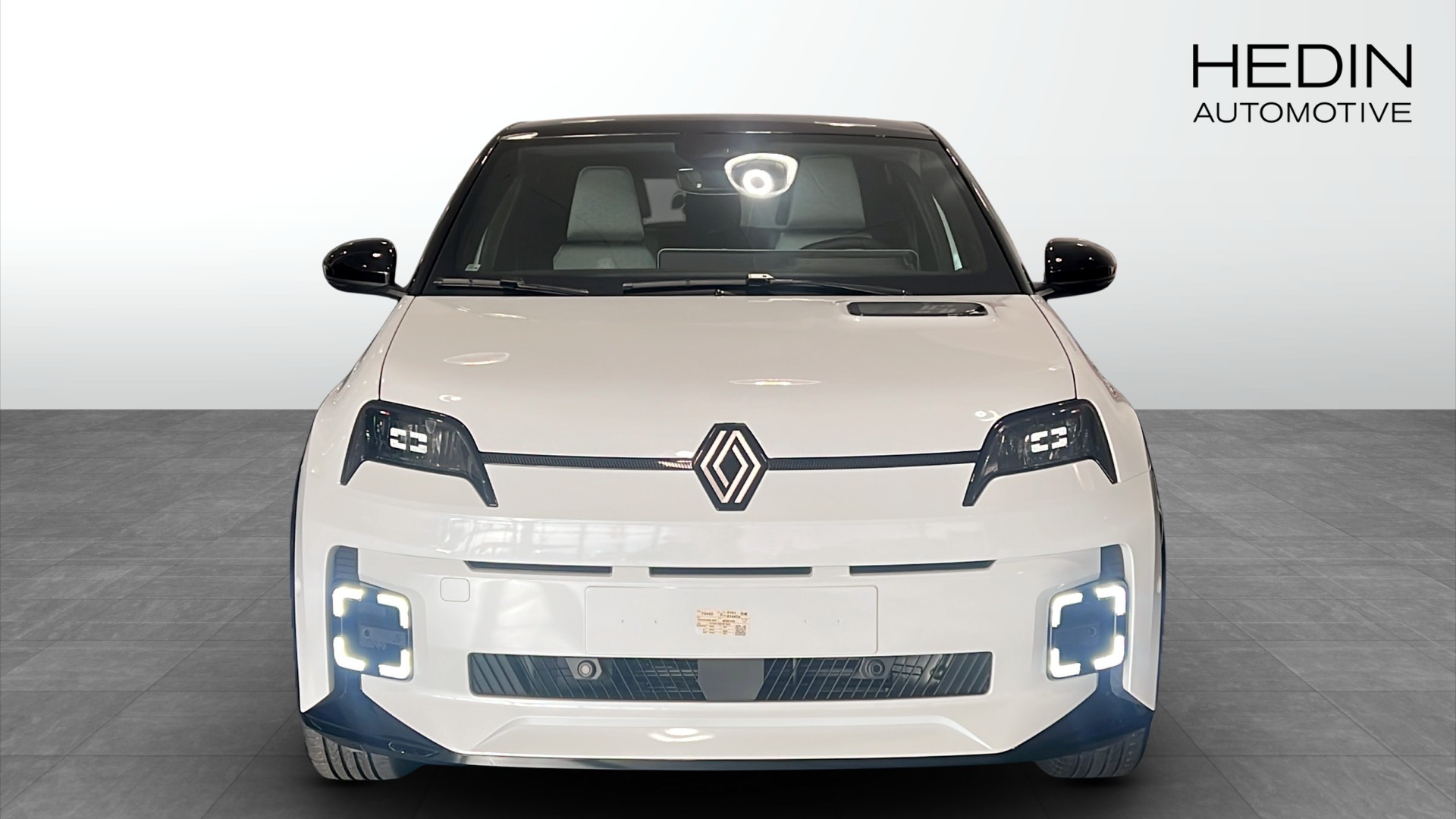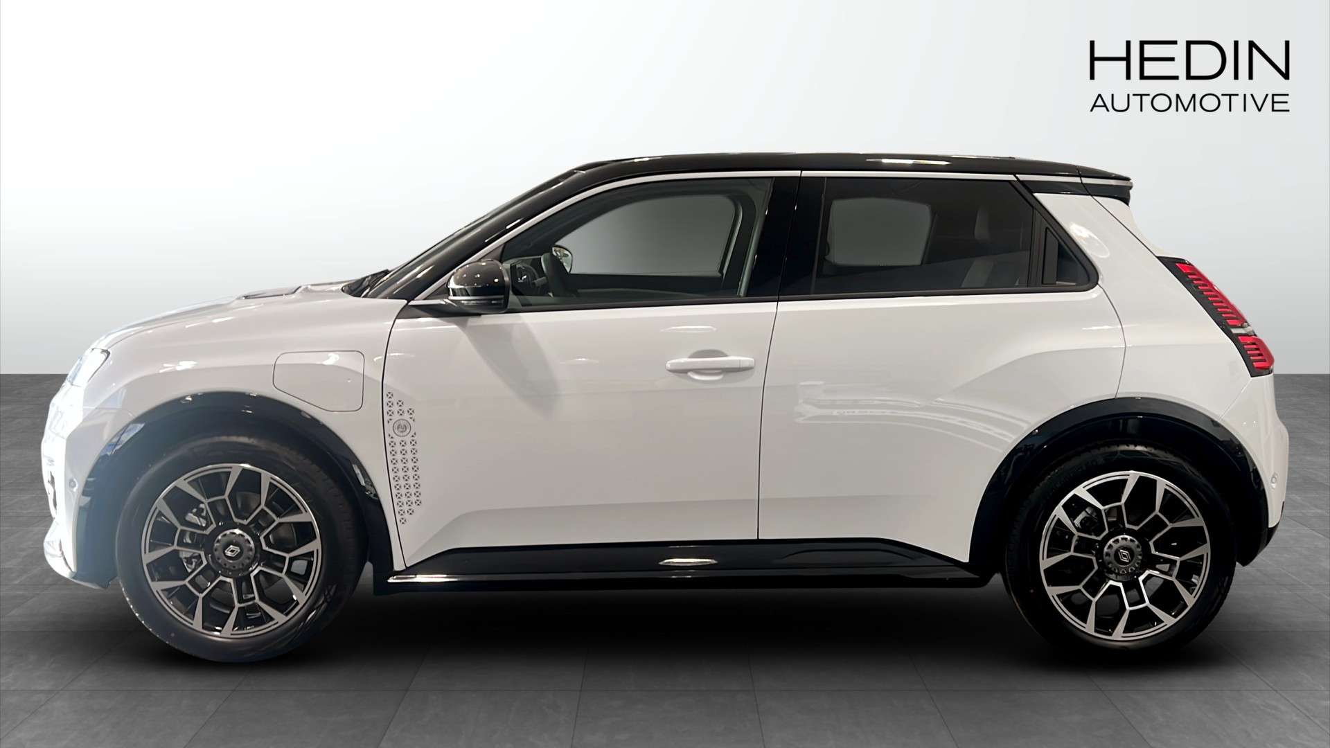 Upptäck nya Renault 5 E-Tech, en elegant och avancerad elbil redo att ta dig längre! Med en imponerande WLTP-räckvidd på upp till 408 km och en snittförbrukning på 15,1 kWh/100 km kombinerar denna bil hållbarhet och prestanda. Modellen är en hatchback från 2025, lackerad i en modernt stilren vit färg med kontrasterande svart tak.