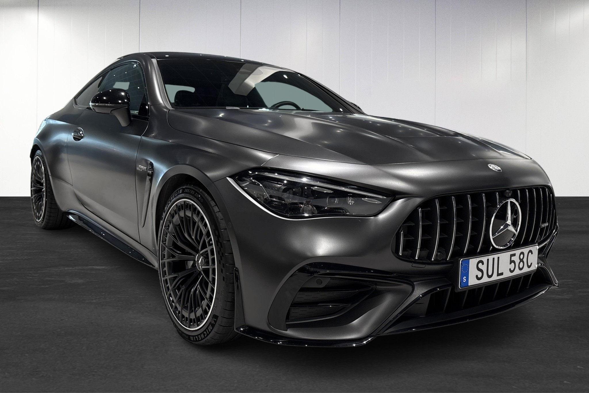 Bilens utsida fascinerar med sin eleganta MANUFAKTUR grafitgrå magno-färg och AMG Nightpackage, medan interiören bjuder på en lyxig körupplevelse med funktioner som AMG Performance-ratt, ventilerade multikonturstolar med massagefunktion och ett premium Burmester 3D-surroundljudsystem. Det innovativa MBUX-systemet håller dig alltid uppkopplad med både Apple CarPlay och Android Auto.