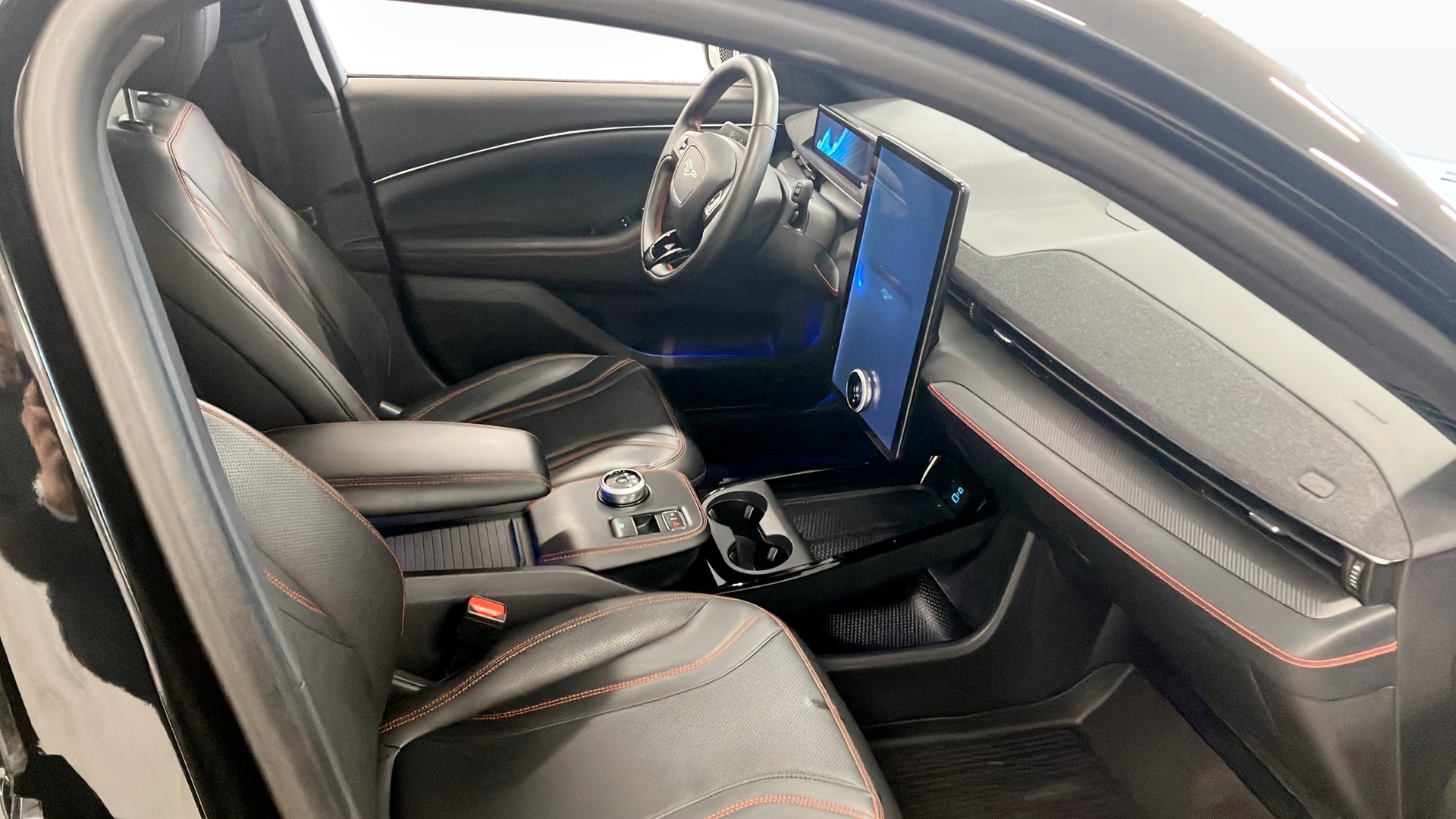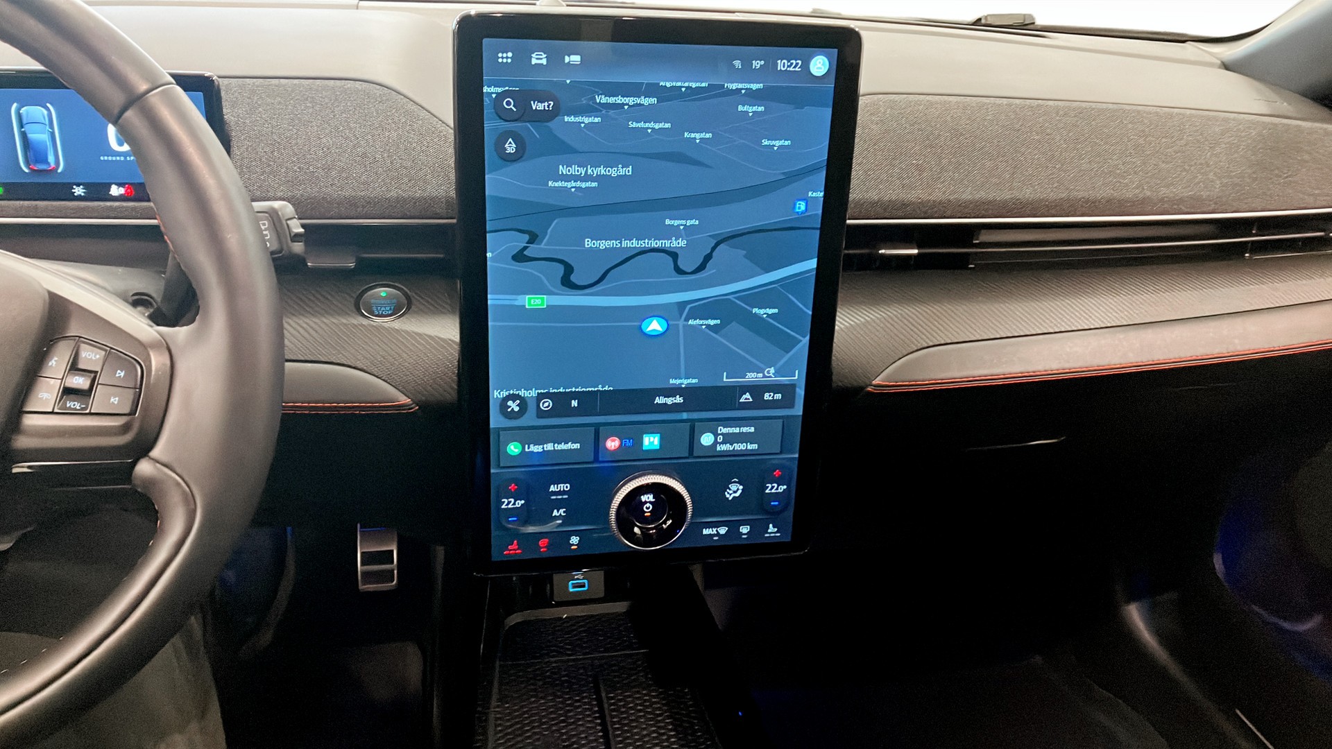 Mustang Mach-E bjuder på en stor pekskärm med Apple CarPlay, Android Auto, Bluetooth och röststyrning. Backkamera, parkeringssensorer fram och bak samt digital hastighetsmätare gör körningen både enklare och smidigare. Keyless nyckelfria dörrar och start samt elinfällbara sidospeglar höjer vardagskomforten.