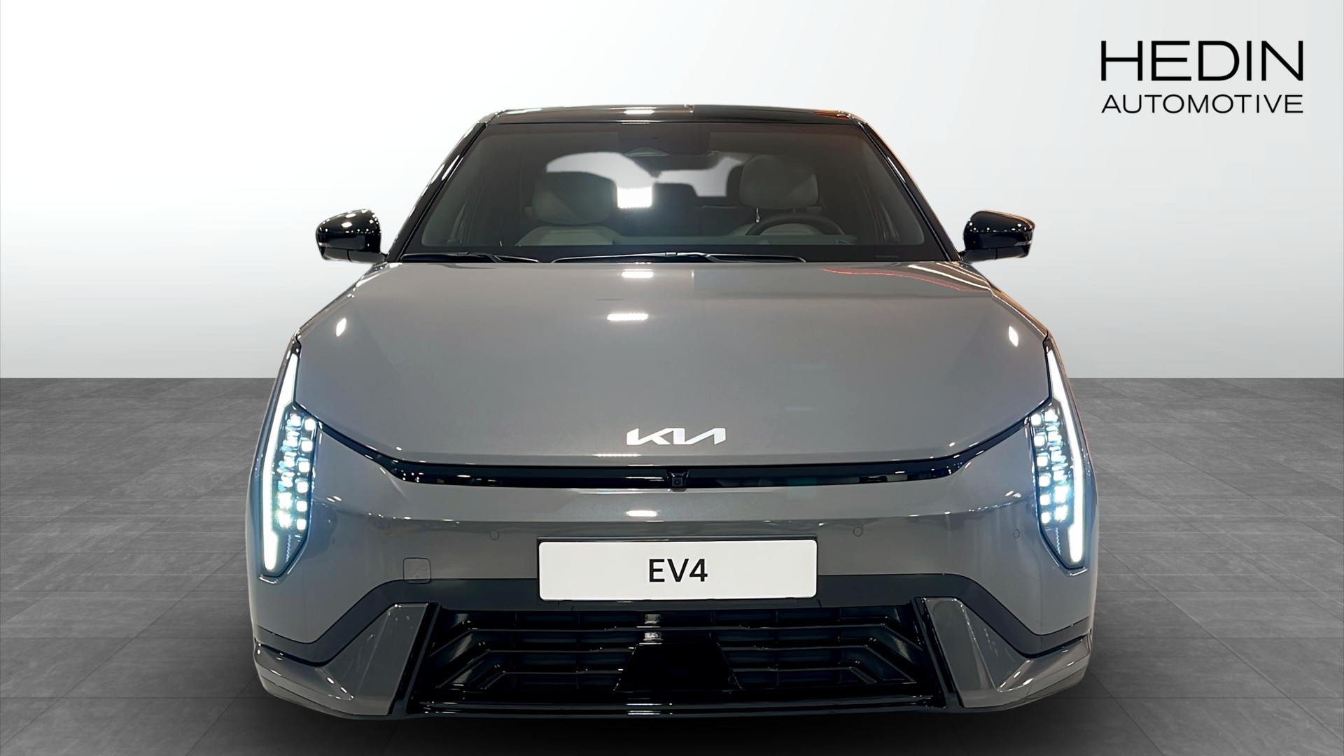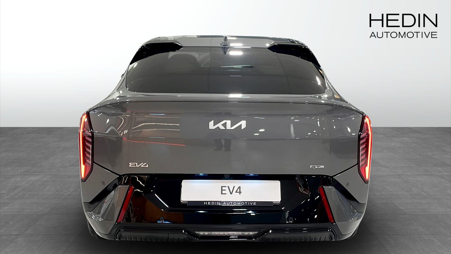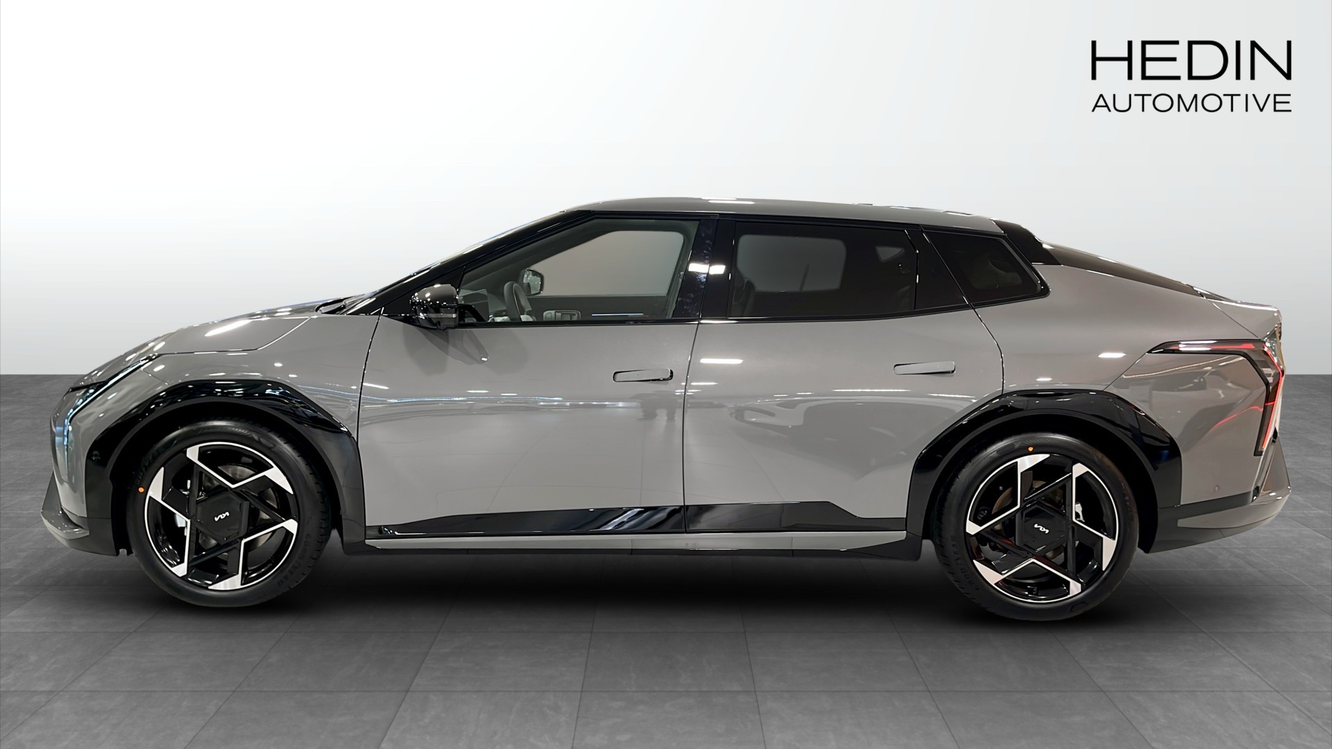 Kia EV4 Fastback GT Line Long Range – 2025, helt ny elbil i läcker Shale Grey med svart interiör och sportig GT Line-design. Snygg fastback-kaross, 19" lättmetallfälgar och dynamisk LED-belysning gör att den verkligen sticker ut.