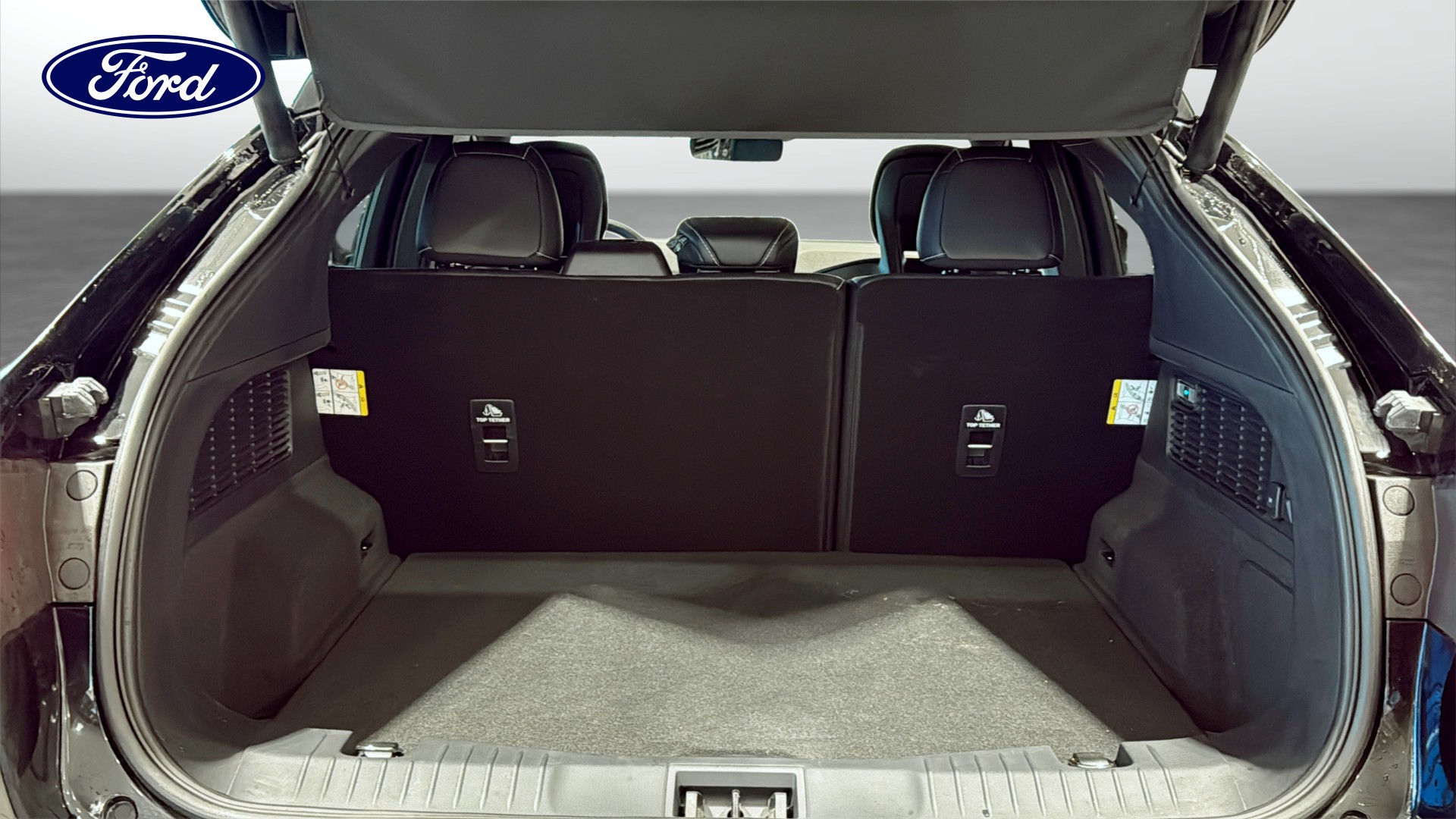 Säkerhets- och förarstödsnivån är mycket hög med bland annat Ford BlueCruise, adaptiv farthållare, körfilsassistans/vägfilsassistans, döda-vinkelvarning, kollisionsvarning, trötthetsvarnare, skyltigenkänning, backkamera, 360°-kamera, parkeringssensorer fram och bak, automatisk parkering, backstartshjälp och nödsamtal.