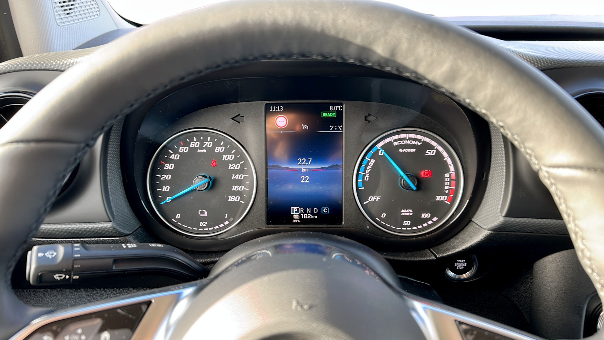 Förarplatsen är genomtänkt och komfortabel med eluppvärmd förarstol, säteskomfortpaket, läderratt och uppvärmd multifunktionsratt, höjd- och längdjusterbar ratt samt dubbelt passagerarsäte. MBUX multimediasystem med 9,5-tumsskärm, färgdisplay i kombiinstrumentet och smartphoneintegration gör det enkelt att sköta navigation, samtal och media. Keyless start förenklar vardagen.