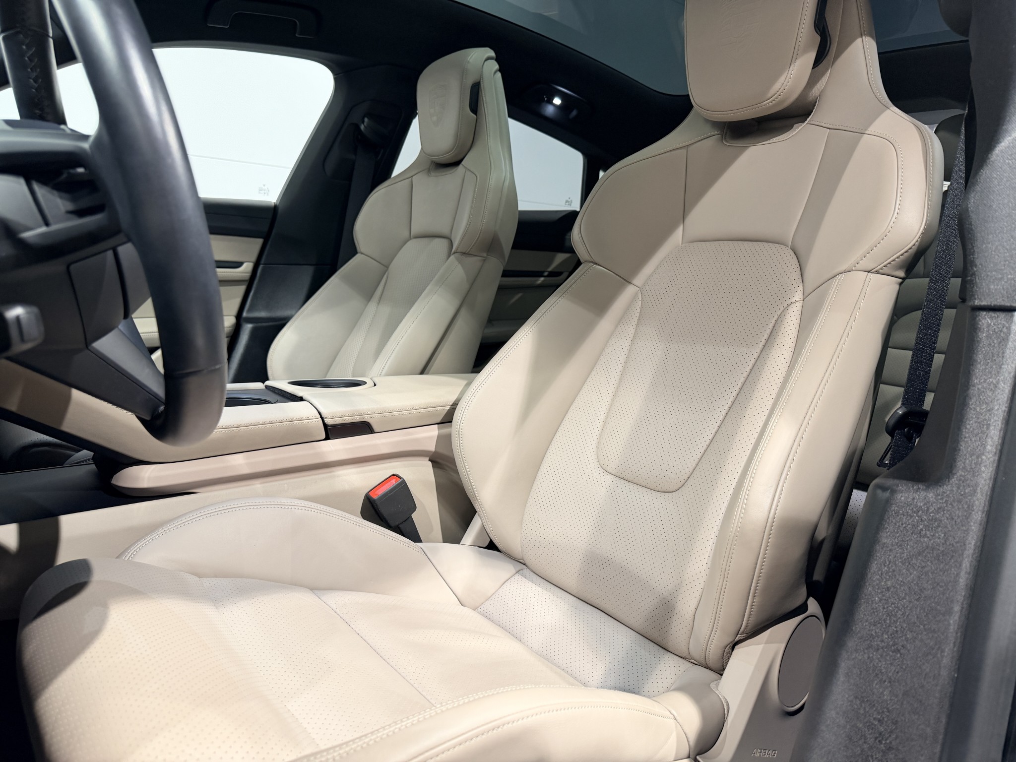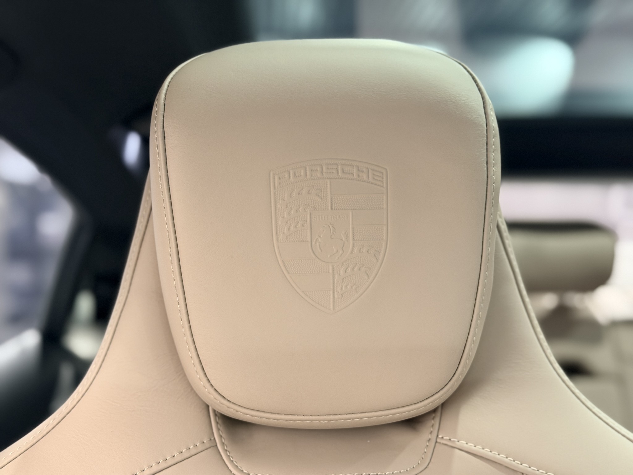 - Porschevapen präglade på nackstöd