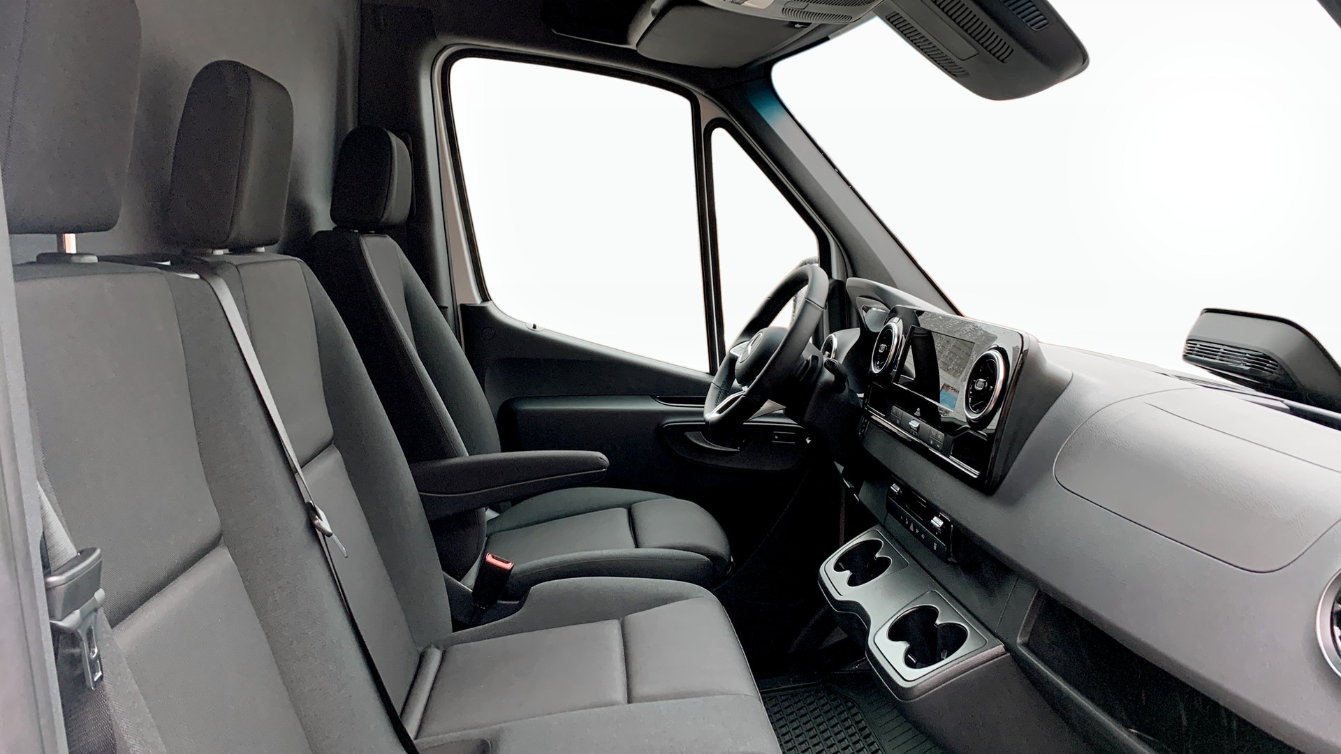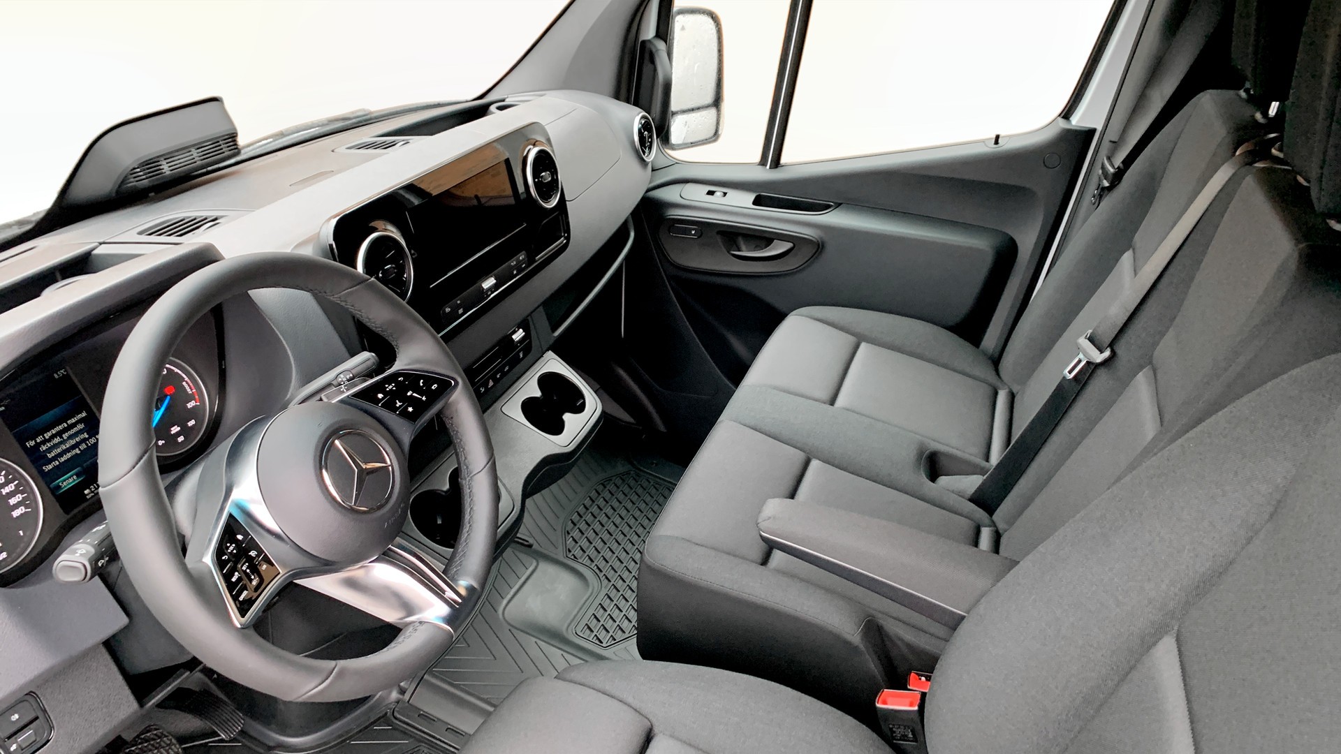 E-Sprinter erbjuder komfort för upp till 3 personer, med en rymlig och välutrustad interiör inklusive multifunktionsratt i läder, MBUX multimediasystem och TEMPMATIC klimatanläggning för en bekväm och uppkopplad körning. Praktiska funktioner som backkamera, aktiv kurshållningsassistent, dödvinkelassistent och eluppvärmda sidobackspeglar gör körningen både säker och smidig.