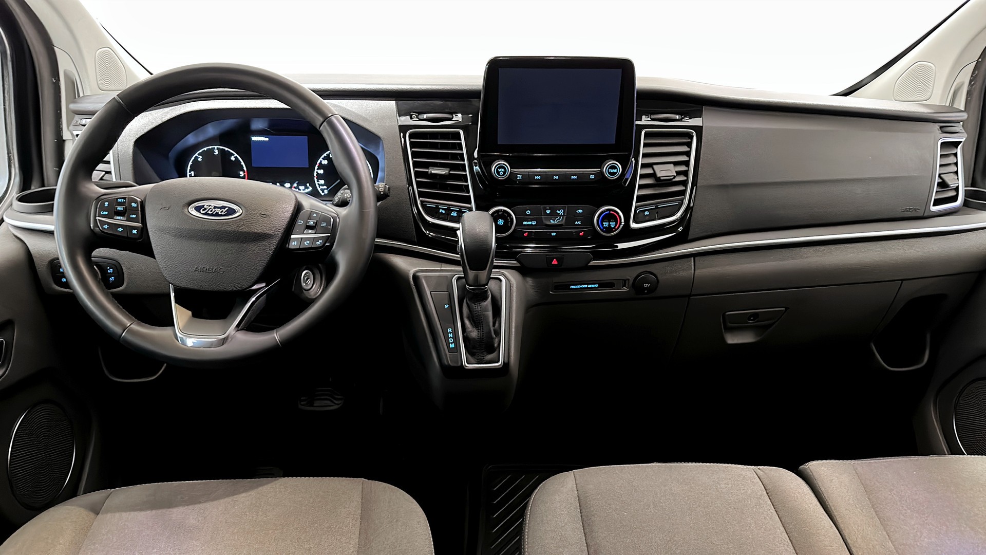 Ford Tourneo Custom 2023 – 9-sitsig minibuss med automatlåda i snygga Frozen White, perfekt för både företag och stora familjer. Svenskregistrerad november 2023.