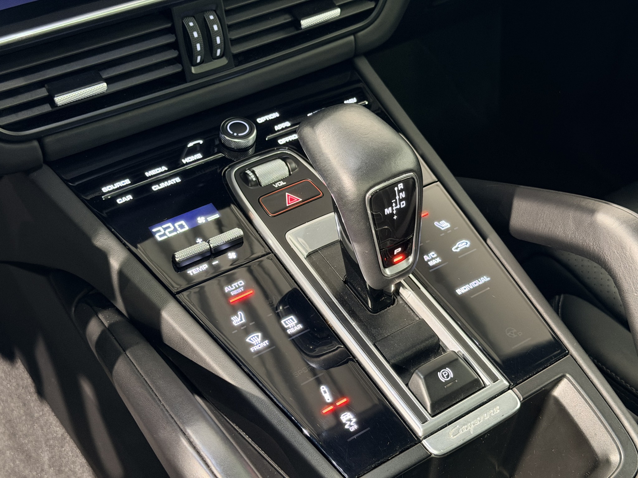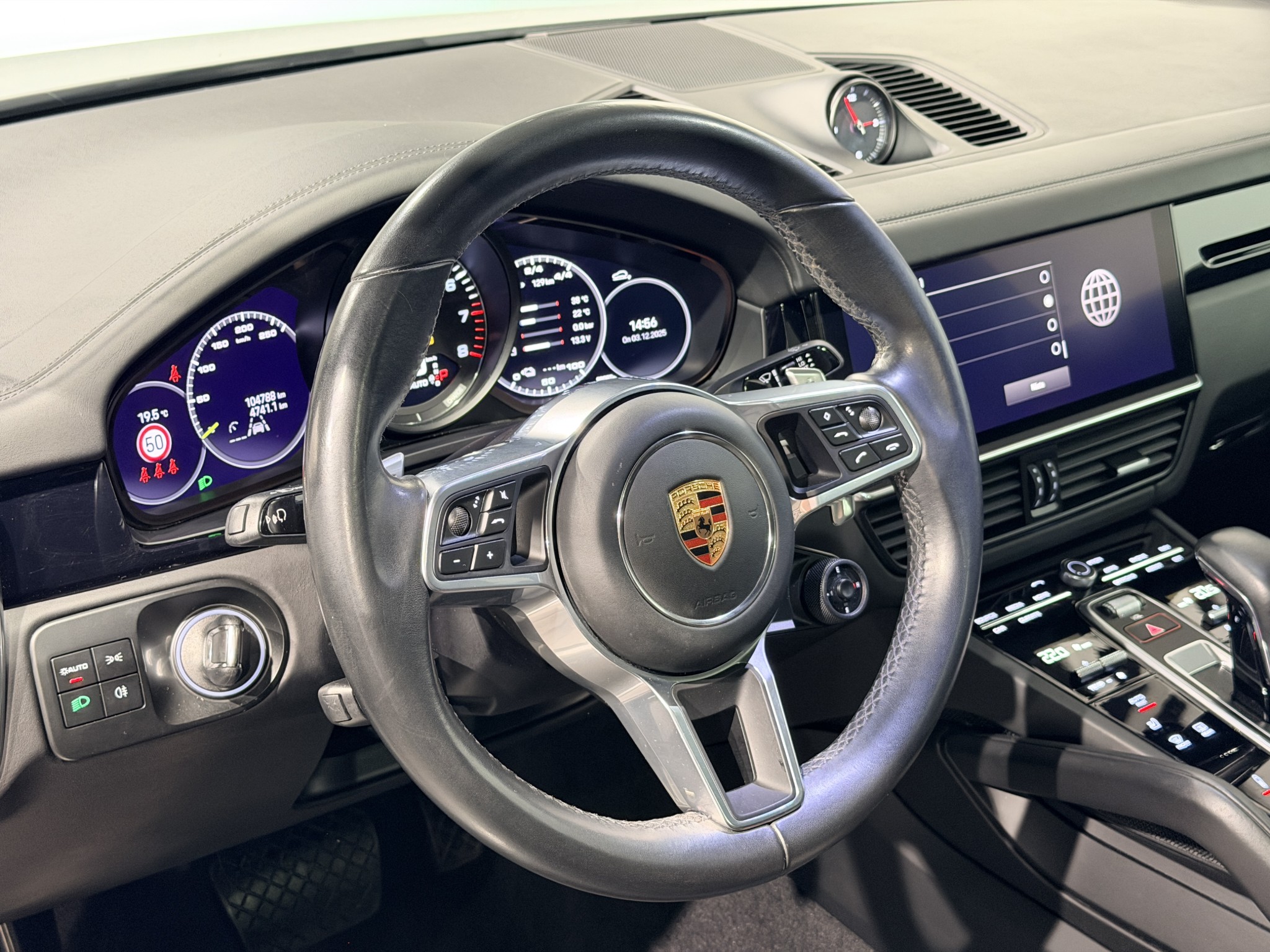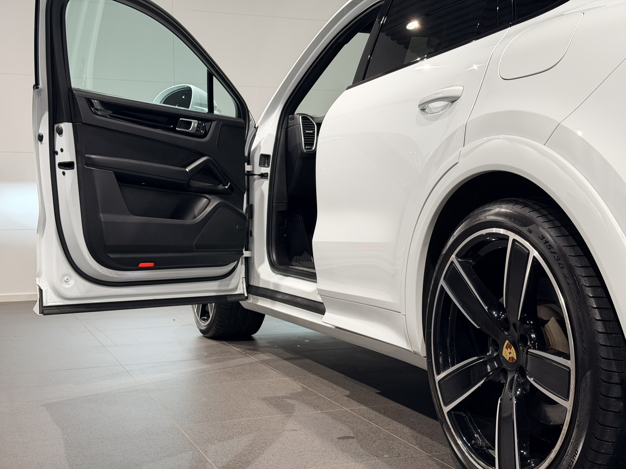 Extrautrustningen inkluderar 22-tums Cayenne Sport Classic-fälgar, adaptiva sportstolar (18-vägs), eluppvärmt vindruta, sportdesign-paket, tonade LED-strålkastare och mycket mer. Bilen är dessutom utrustad med elektriskt infällbar dragkrok och avancerat parkeringsstöd med surround view.