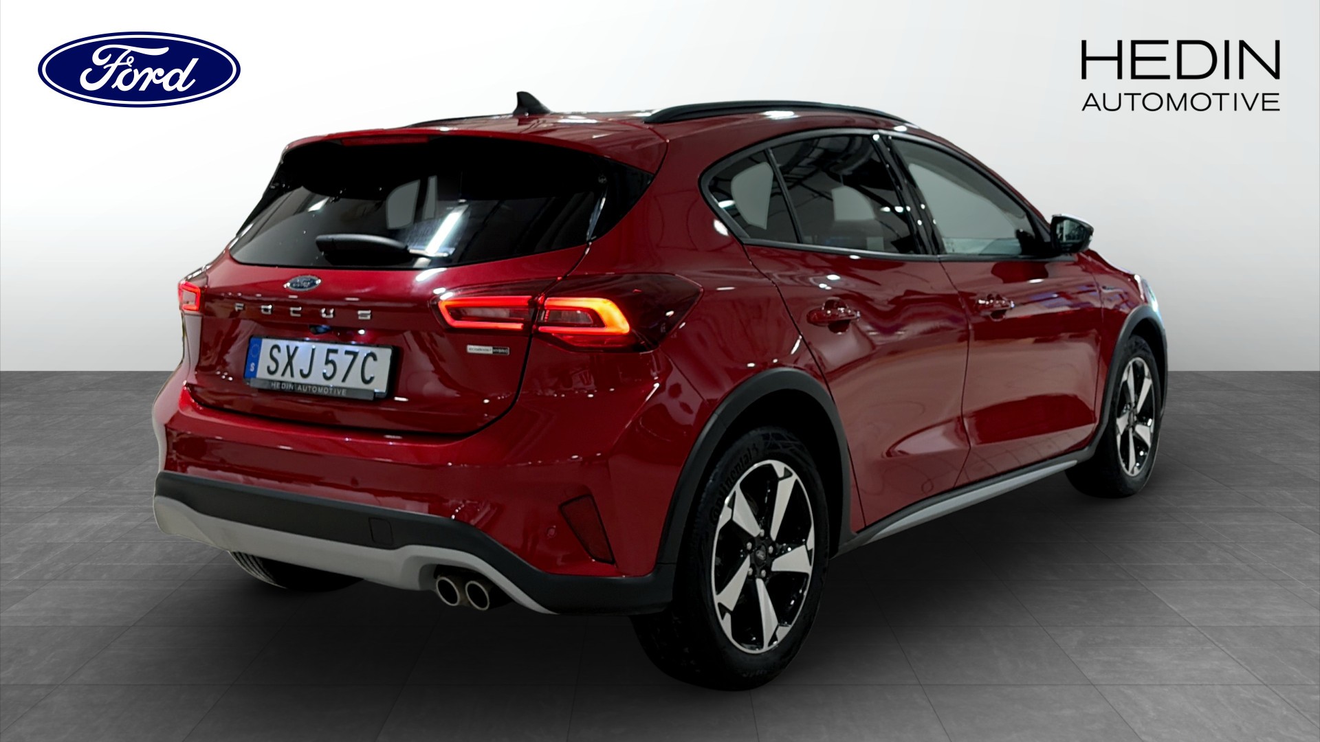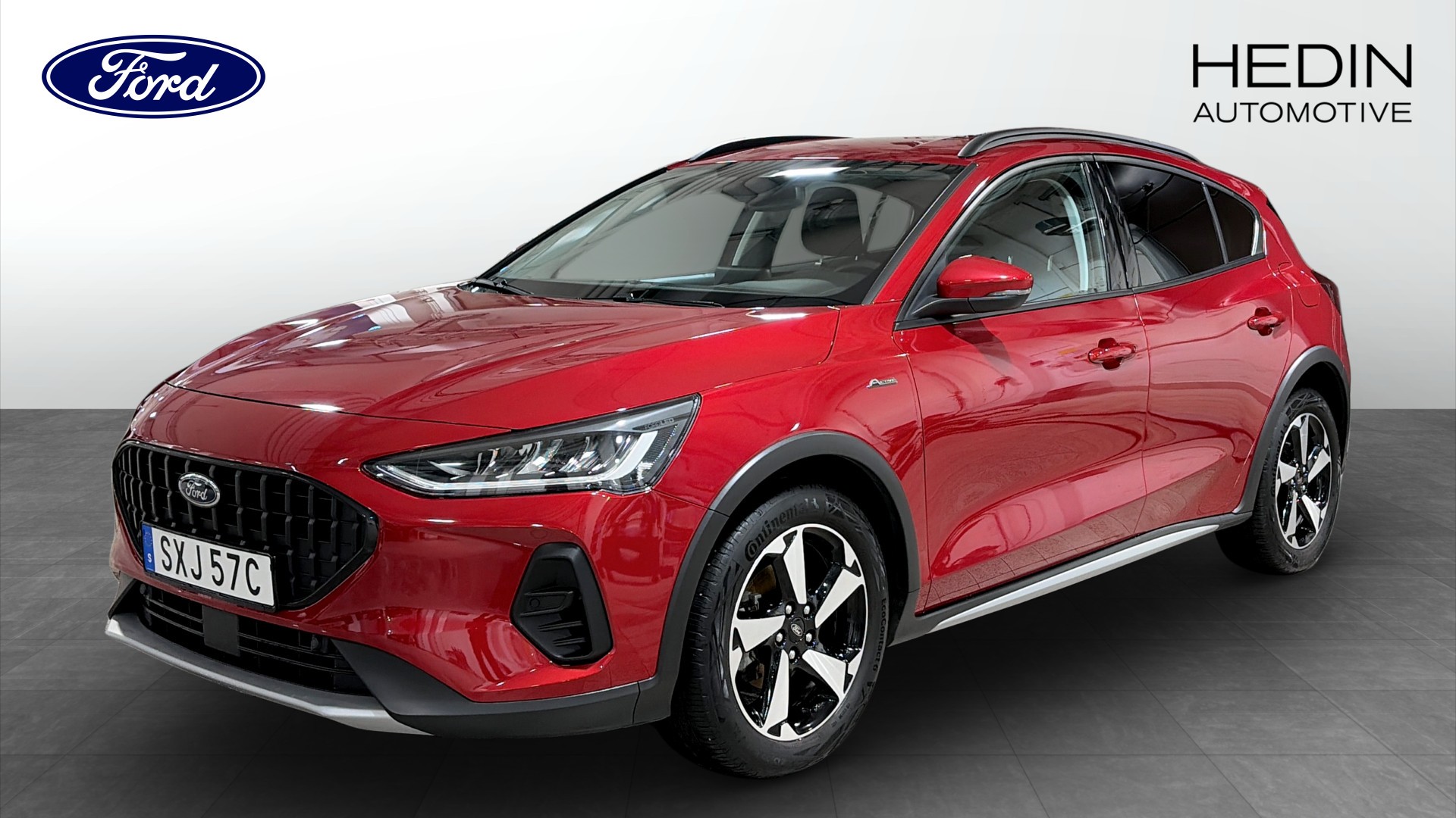Ford Focus Active 1.0T EcoBoost Hybrid 125hk Edition, 2022, i snygga färgen Fantastic Red – en riktigt praktisk och komfortabel vardagsbil med lite högre markfrigång och aktivt utseende. Endast ca 5900 mil på mätaren och svensksåld.