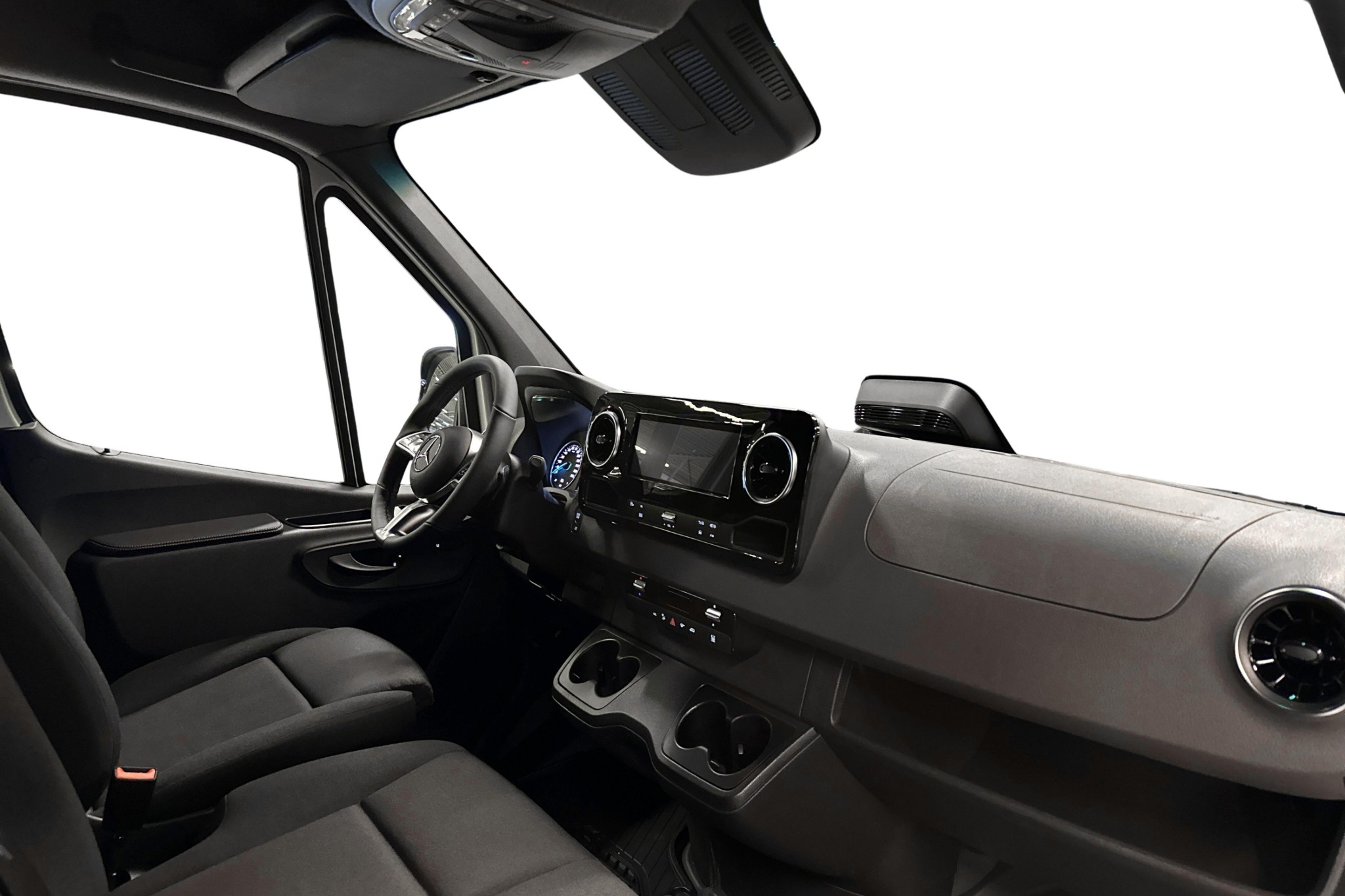 Föraren har det bekvämt med komfortsäte med svankstöd och armstöd, uppvärmd multifunktionsläderratt, eluppvärmda stolar, hylla ovanför vindrutan samt smart förvaring för smartphone. MBUX multimediasystem med digitalradio (DAB), smartphoneintegration och färgdisplay ger en modern och uppkopplad arbetsmiljö.