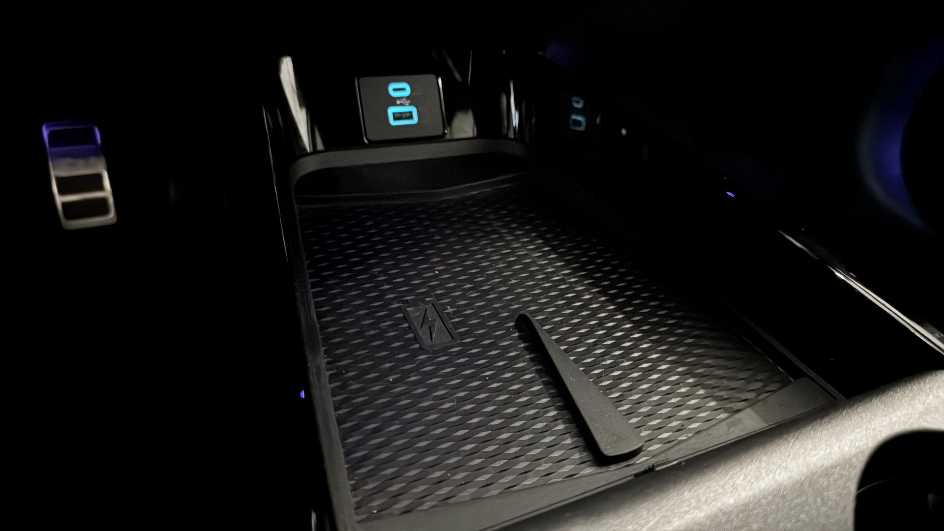 - Mittkonsol med två USB-uttag