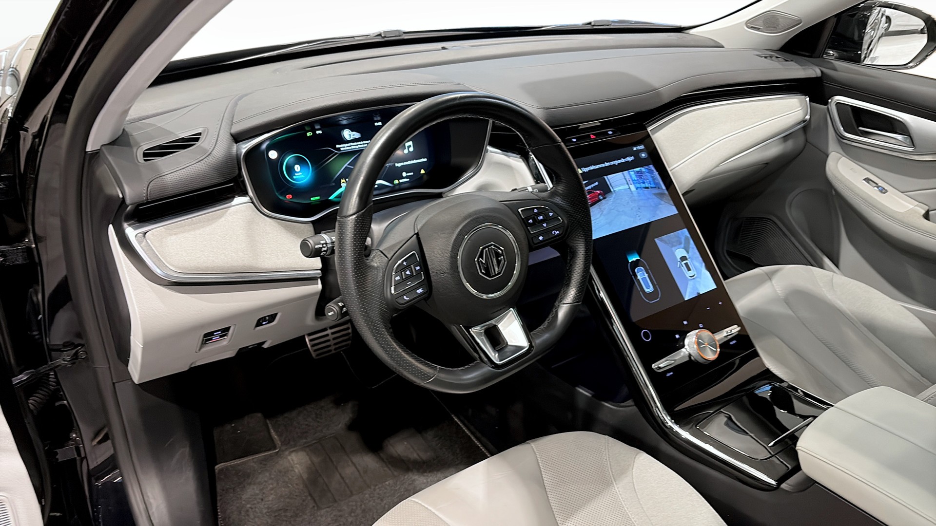 Interiören bjuder på grey interior med nappaläder, eljusterbara och ventilerade säten, panoramasoltak, stämningsbelysning, trådlös mobilladdning, digital instrumentpanel, Apple CarPlay/Android Auto, navigation, Bluetooth och appstyrning (iSmart).