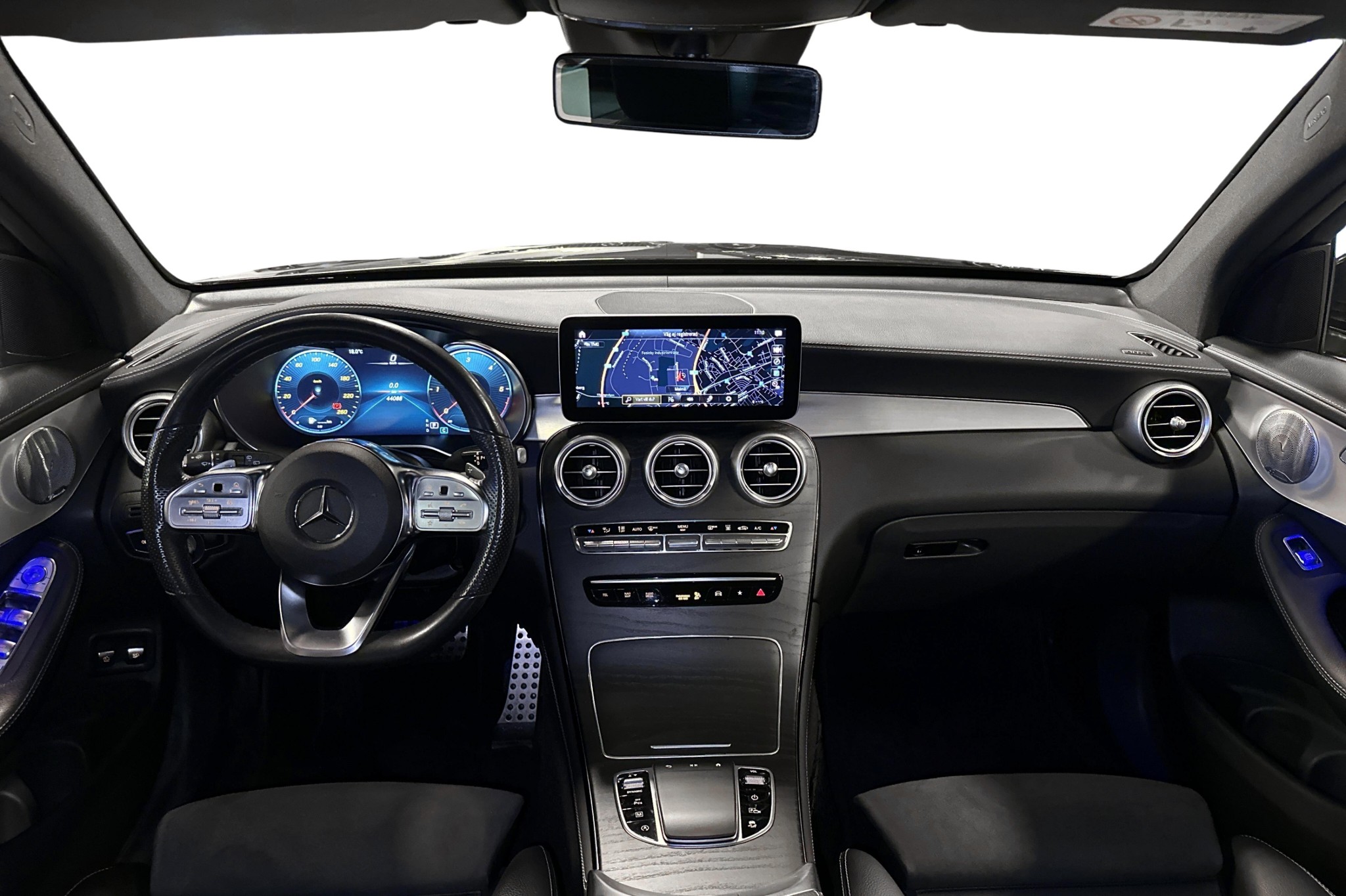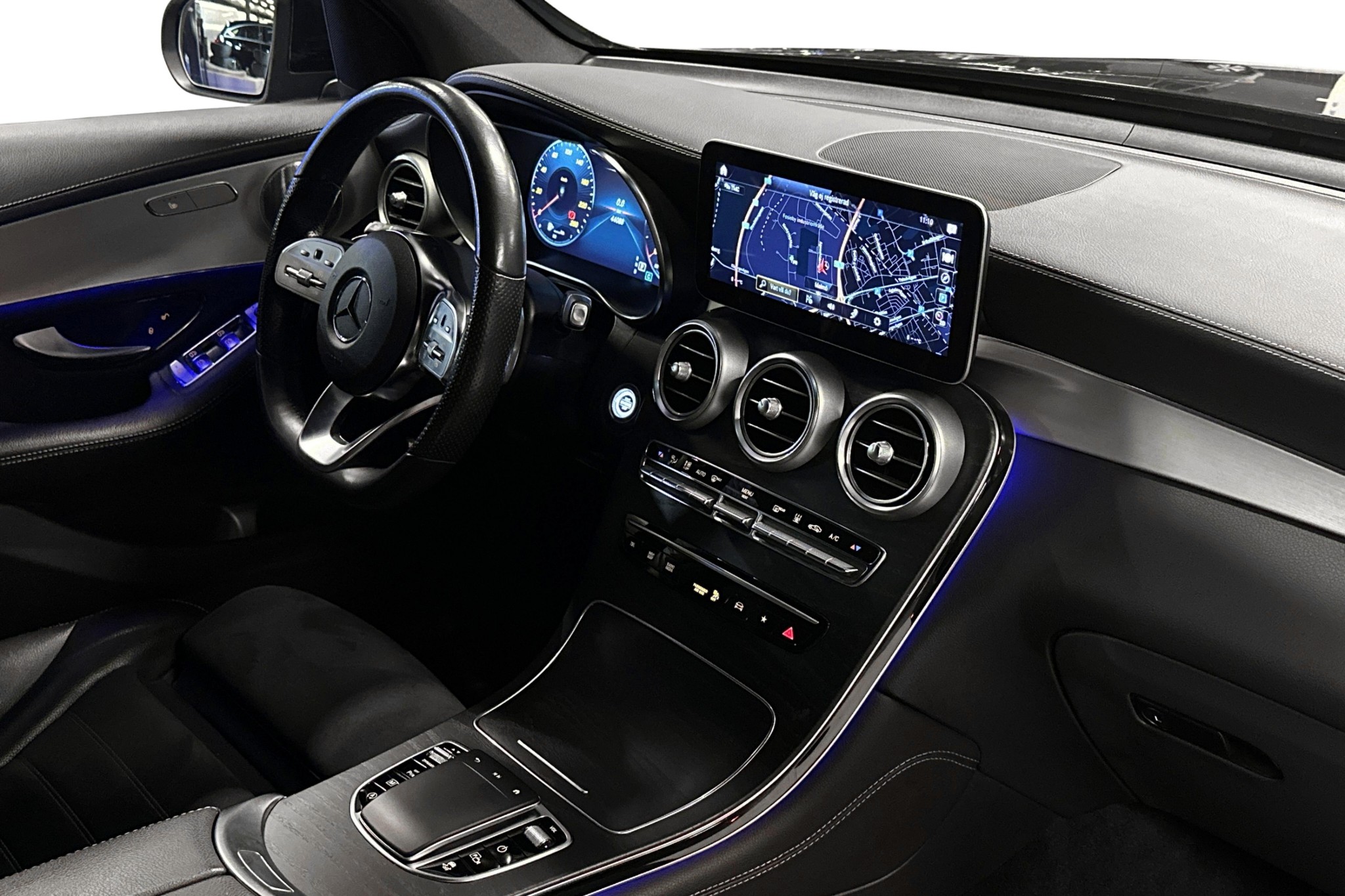 Denna GLC är utrustad med bland annat AMG Line och Night-paket som ger ett sportigt och stilrent yttre, 20" hjul samt dynamiska LED-strålkastare. Invändigt hittar du en premiumkabin med tyg/konstläder/mikrofiber, uppvärmda framsäten, multifunktionsratt med rattväxlingspaddlar, färddator och navigation.