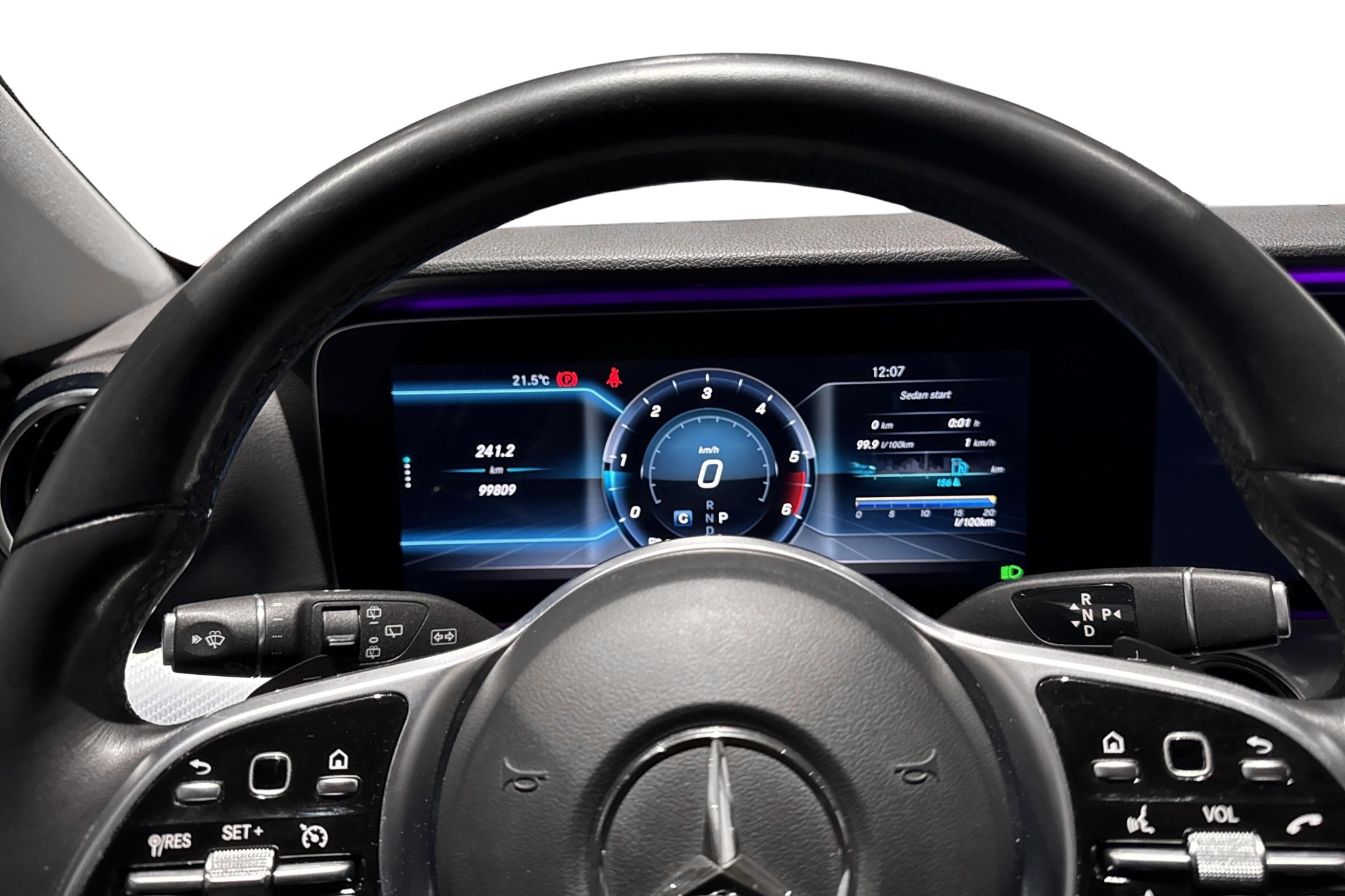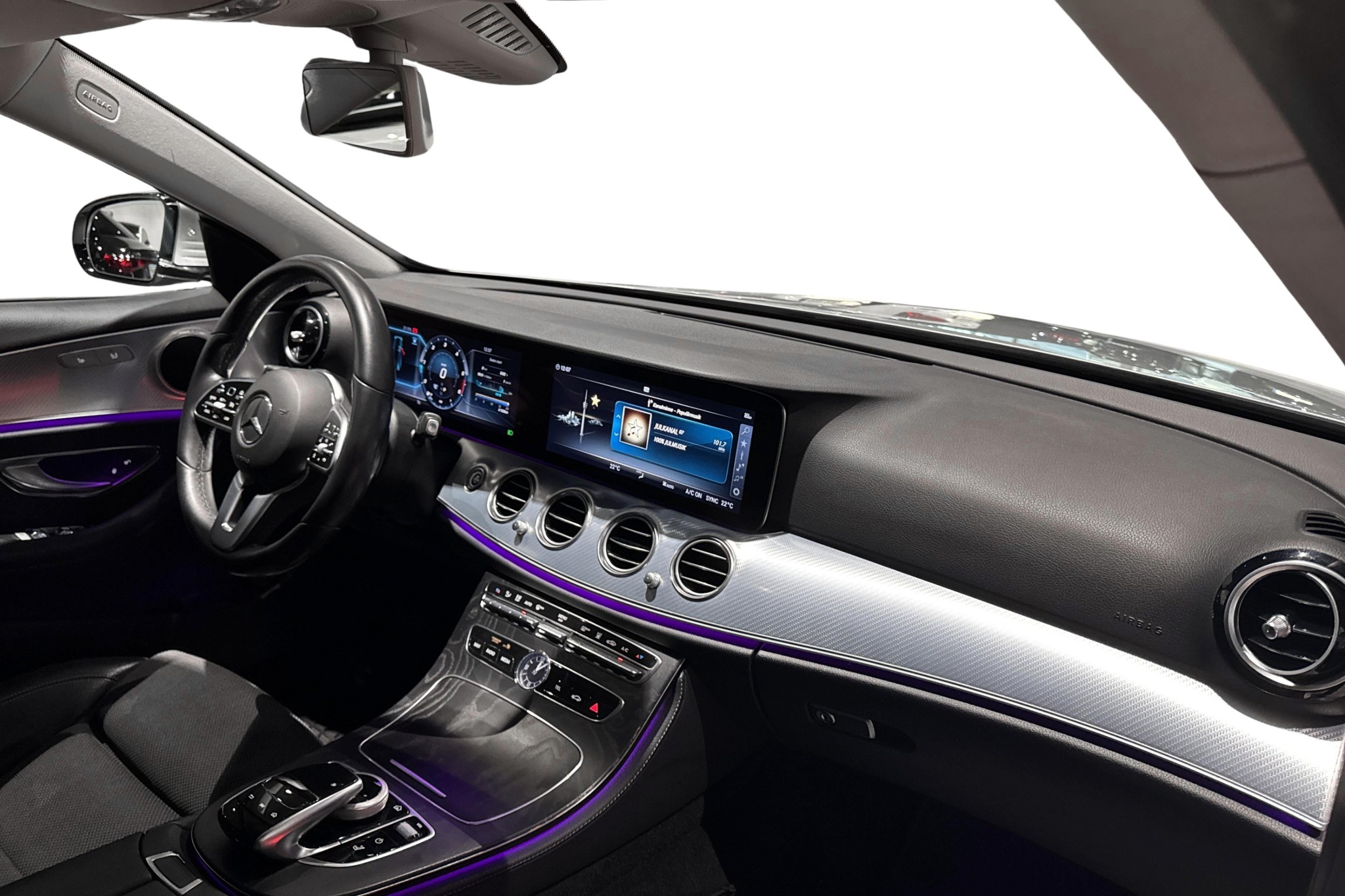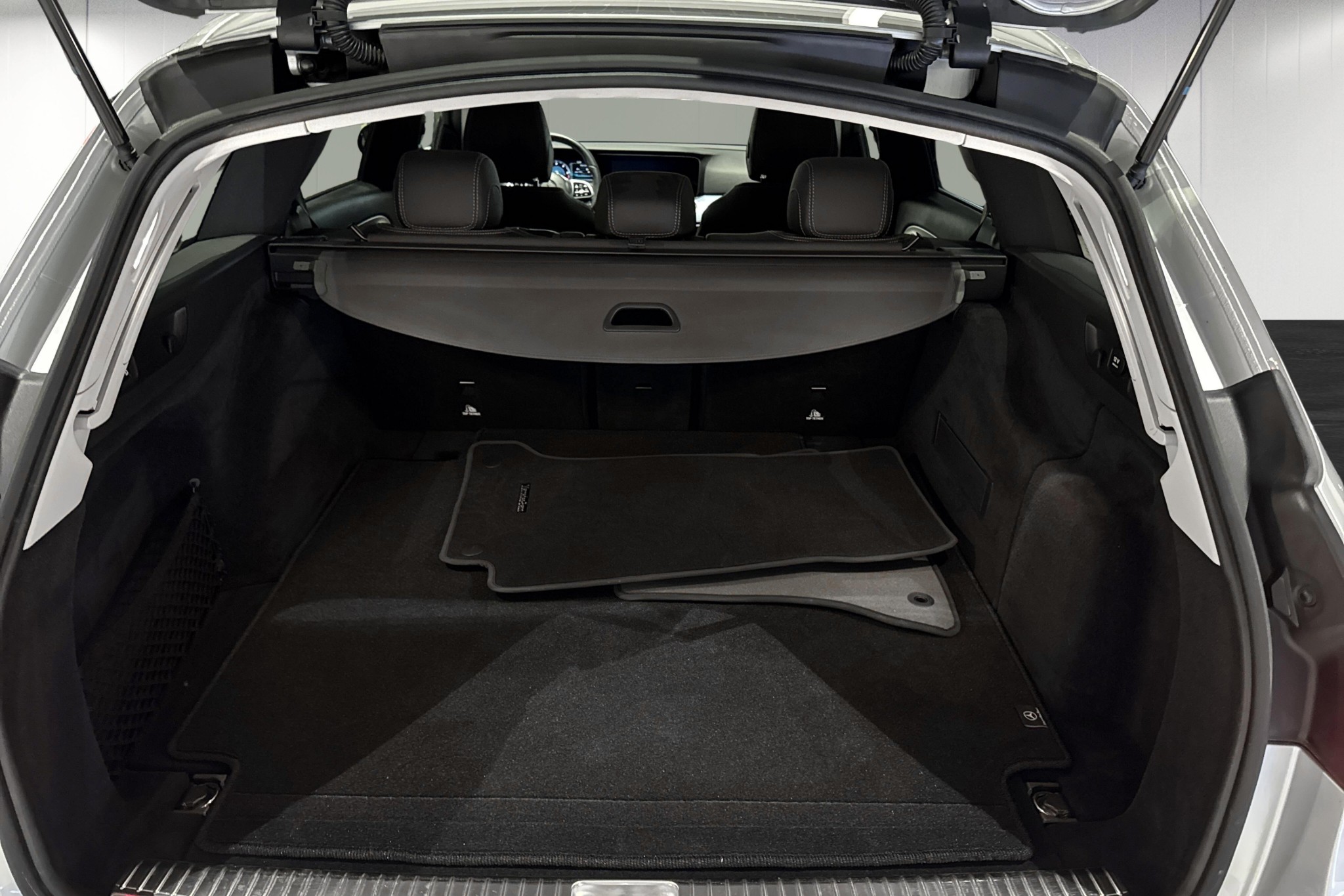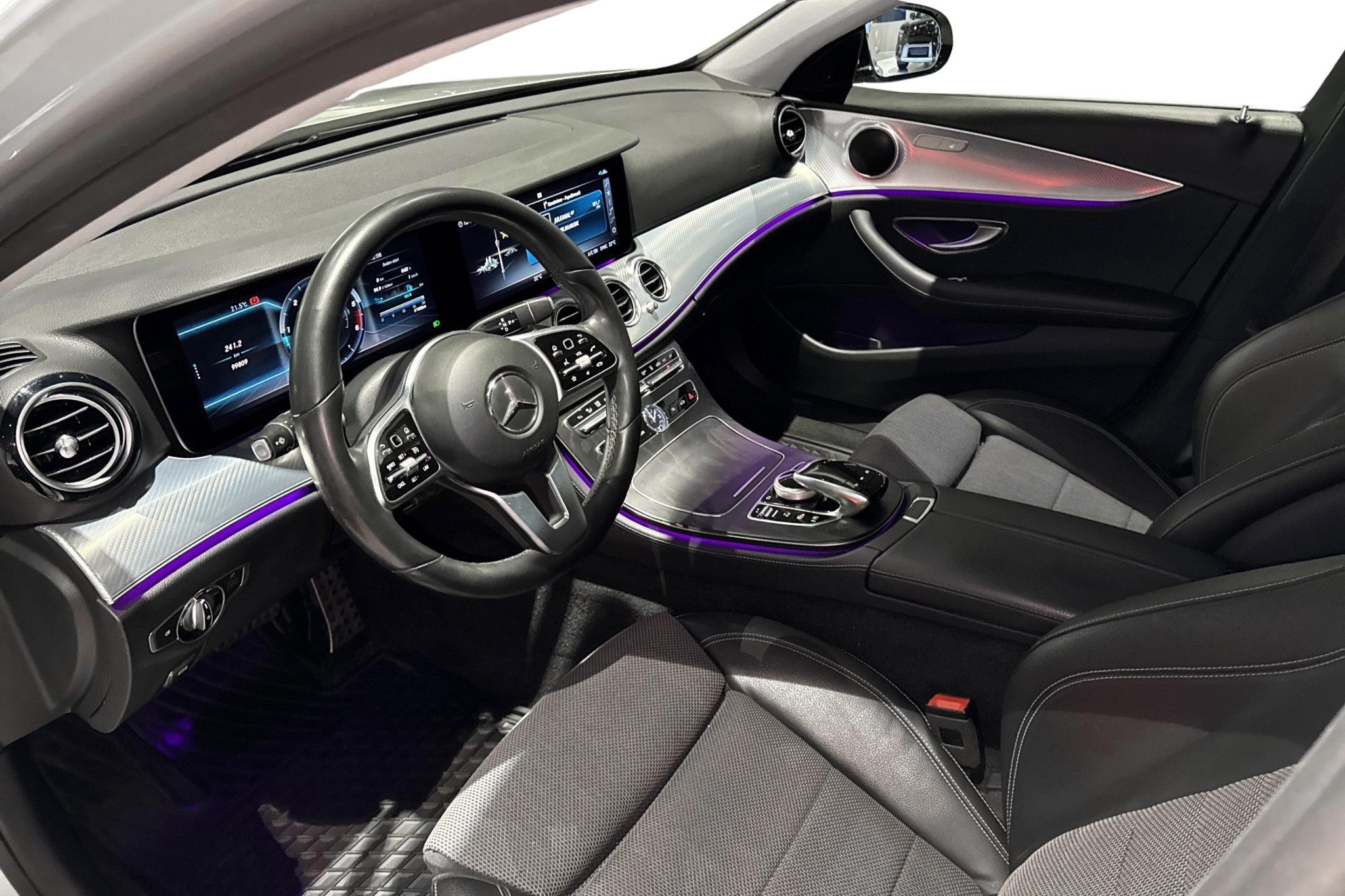 Invändigt får du widescreen-display med förardisplay 12,3", Mercedes-Benz navigation, konstläder/textilklädsel, automatisk klimatanläggning, eluppvärmda framstolar, innertak i kristallgrått och snygg panelbelysning.