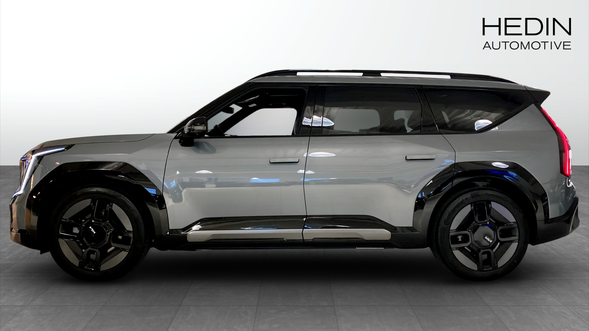 Kia EV9 GT-Line AWD Long Range 6-sits, ny 2025, i eleganta färgen Aurora Black Pearl – en helt elektrisk, rymlig och lyxigt utrustad SUV för familjen eller företaget.