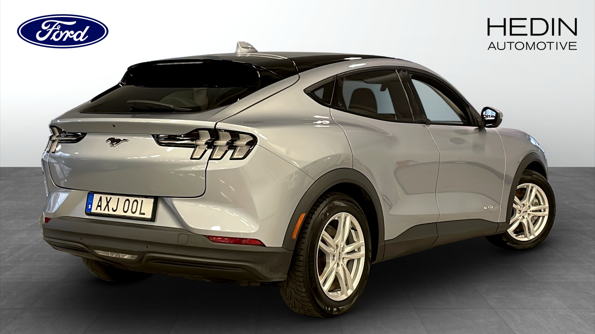 Ford Mustang Mach-E Standard Range RWD, årsmodell 2022, i stilren grå kulör – en modern, helelektrisk SUV-coupé med gott om utrymme och låg förbrukning.