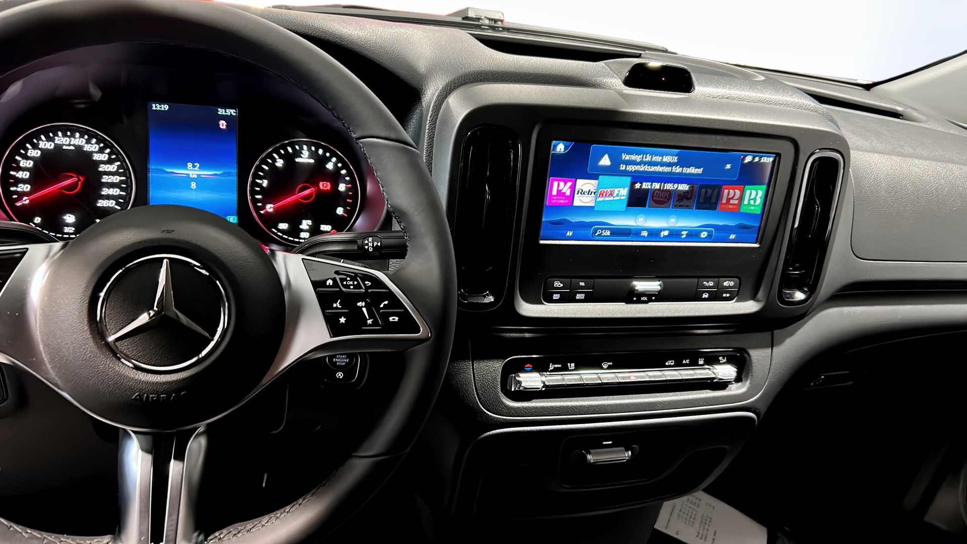Invändigt sitter du bekvämt i ett komfortsäte med svankstöd, eluppvärmda stolar fram och halvautomatisk klimatanläggning. MBUX multimediasystem med smartphone-integration, digitalradio (DAB), multifunktionsratt och förberedelse för navigation gör jobbet enklare och resorna trevligare. Dubbelt passagerarsäte ger plats för tre personer i hytten.