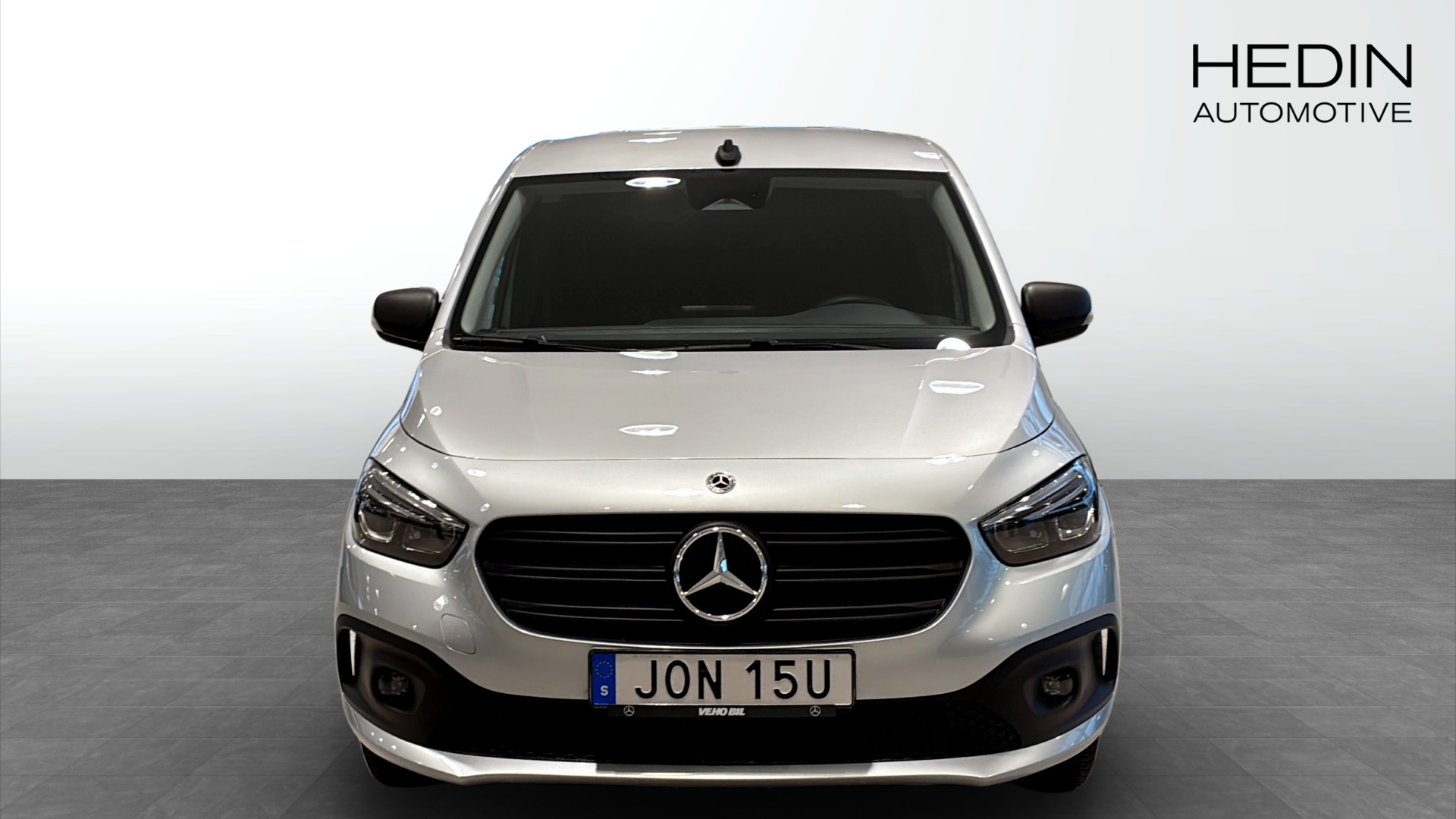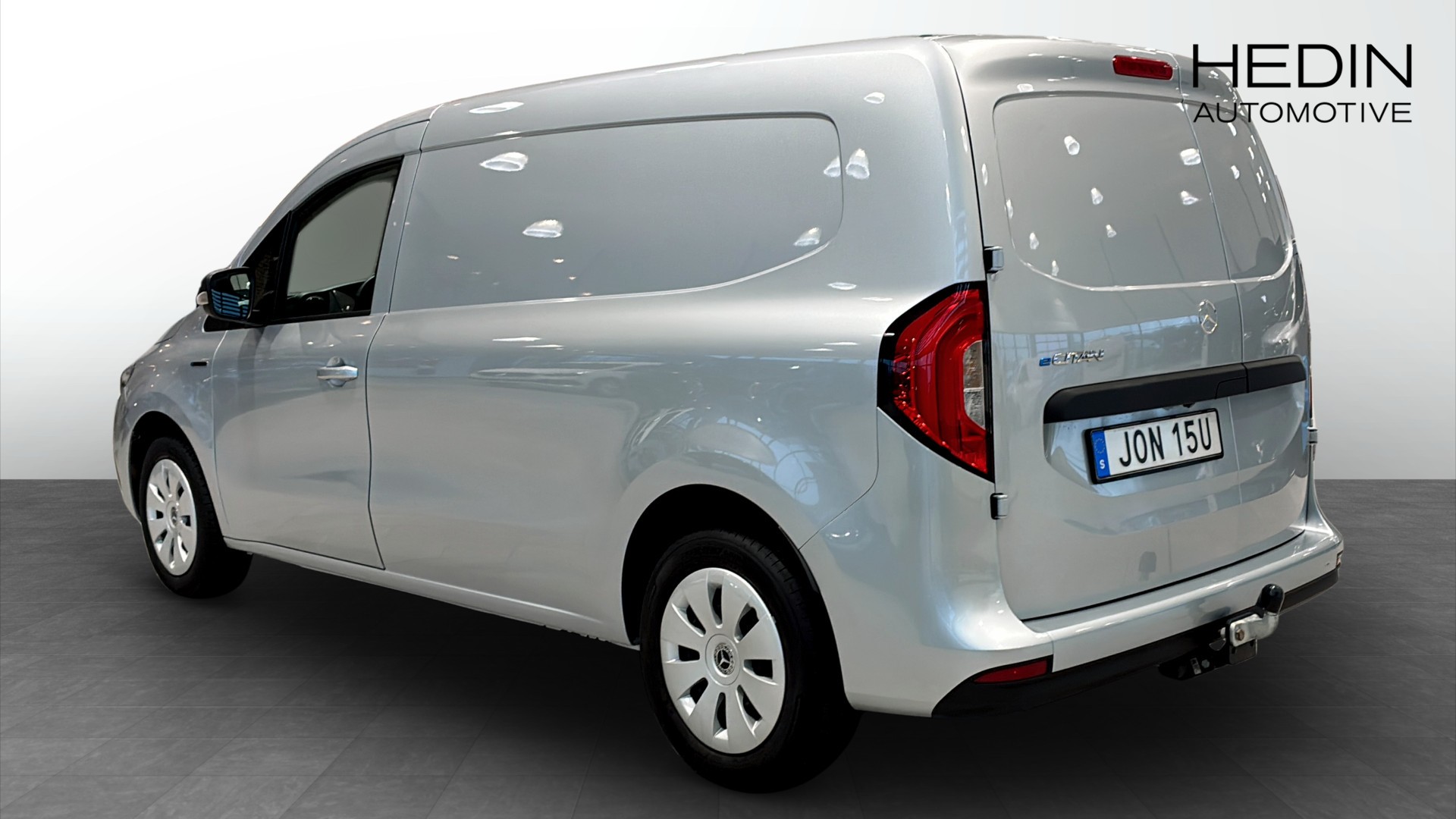 Mercedes-Benz eCitan L2 elskåpbil, årsmodell 2023, i vit lack och med endast ca 123 mil – en nästan ny eldriven transportbil klar för snabb leverans från Hedin Automotive Truck Center Helsingborg.