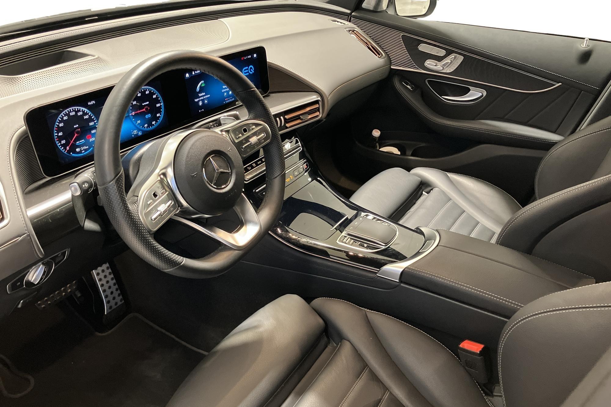 Mercedes-Benz EQC 400 4MATIC AMG Line, 2020, endast ca 1 580 mil – en välutrustad, lyxig el-SUV i obsidiansvart metallic med svart läderinteriör och fyrhjulsdrift.